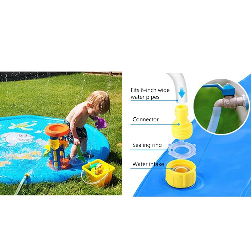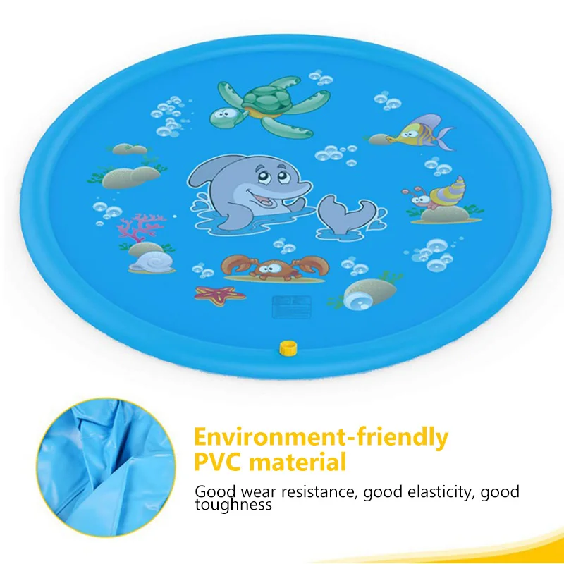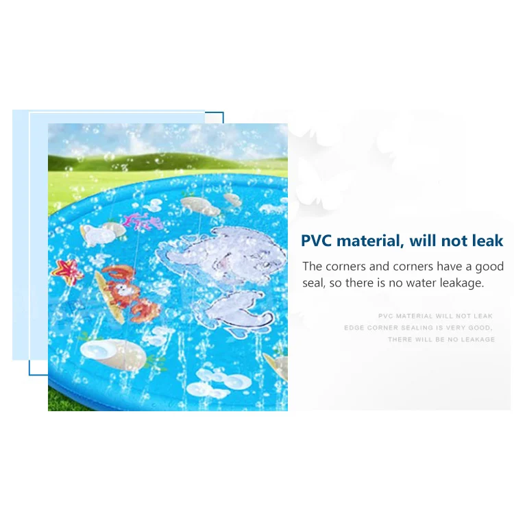Нетоксичные и экологически безопасные Изготовлен из ПВХ высокой плотности, не токсичен и не вредит здоровью детей, экологически безопасен и безопасен. Складная и надувная лодка Коврик для воды может быть сложен и надувной, который прост в использовании и хранении. Прост в использовании Просто подключите его к любому садовому шлангу или ПВХ-трубке, а затем просто Отрегулируйте давление воды, чтобы снизить или повысить высоту распыления. Подходит для детей Забавный игровой коврик! Промокните и промокните на жарком солнце, каждый малыш, который любит воду в возрасте 3-5 лет, будет без ума от него. Сфера применения Подходит для летнего бассейна вечерние, Открытый Пляж Газон игрушки, это также может быть подарок на день рождения, особенно в жаркие летние дни.