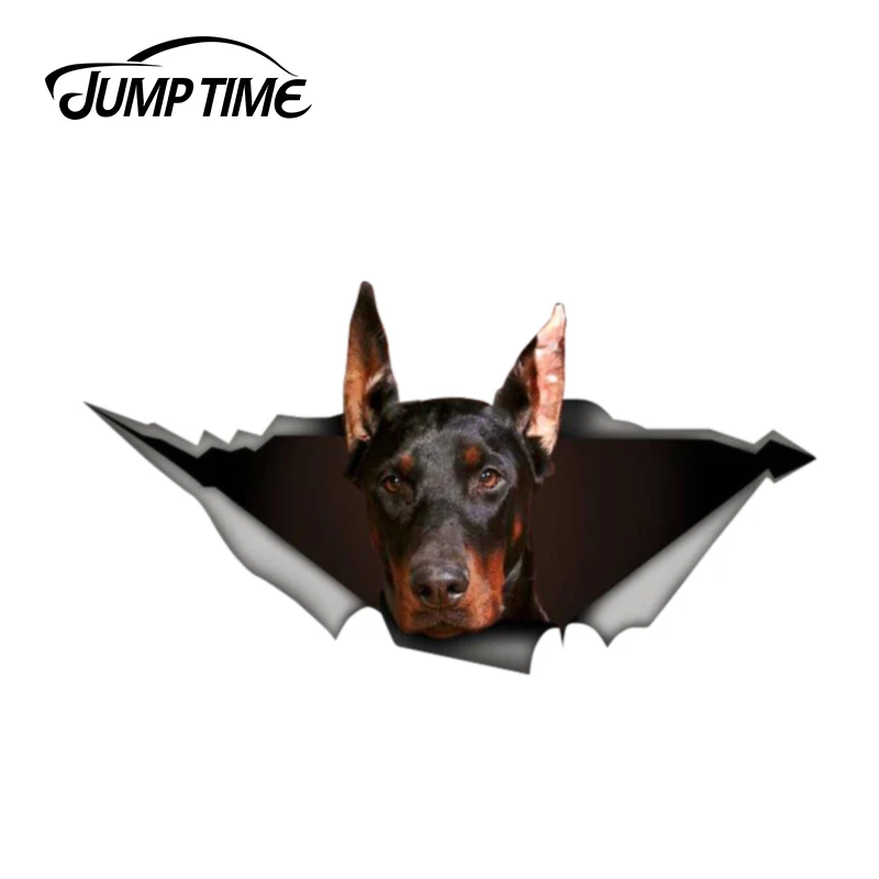 Время прыжков 13 см x 12,2 см 3D Доберман Окно Наклейка стеклянный ...