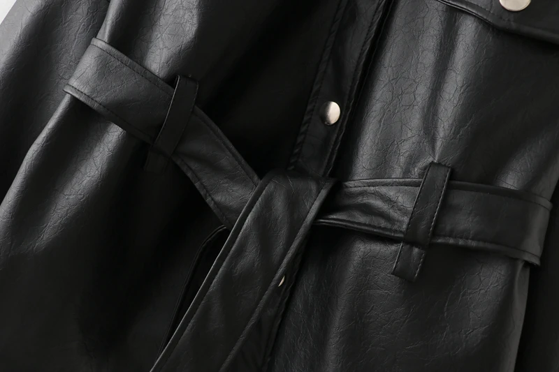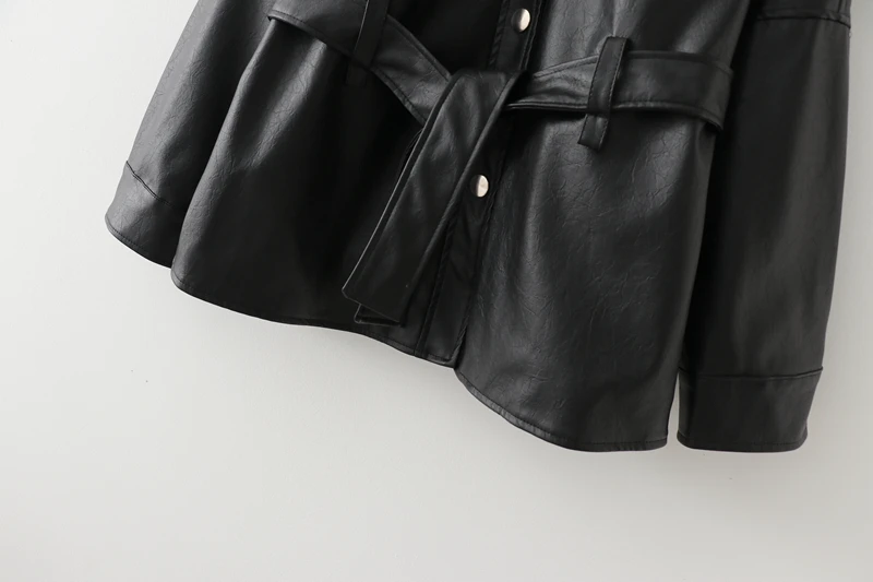 Горячая зима темпераментные Бизнес Блузки Женская мода PU кожаная куртка Женские Элегантные Топы с длинным рукавом с поясом женские
