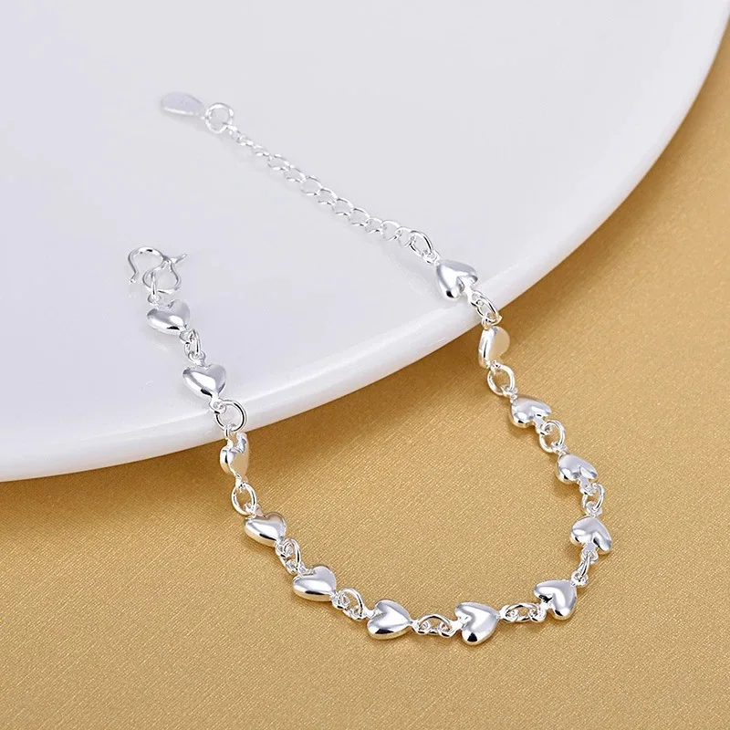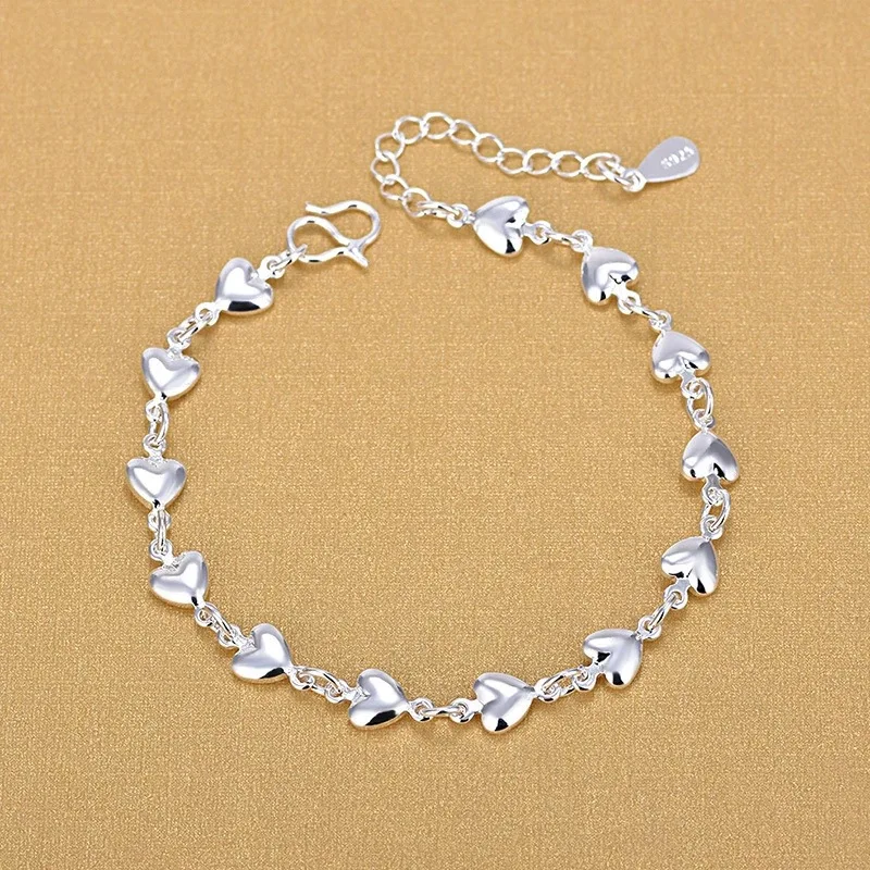 Браслеты из стерлингового серебра 925 пробы в форме сердца, модные браслеты с подвесками, ювелирные изделия для женщин, подарок 2020