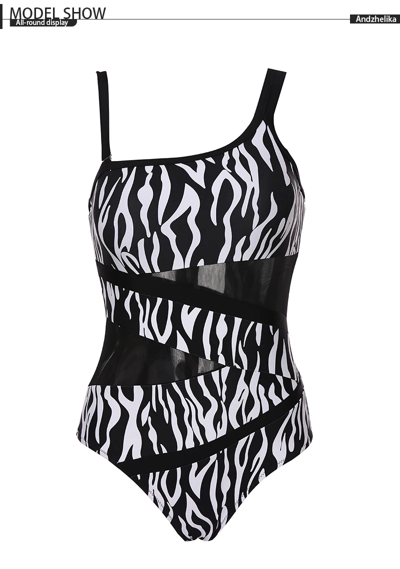 Andzhelika купальник женский 2022 сексуальный черный белый леопардовый принт Купальник Цельный купальник пуш-ап Мягкий сетчатый купальник боди