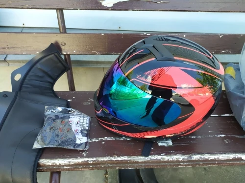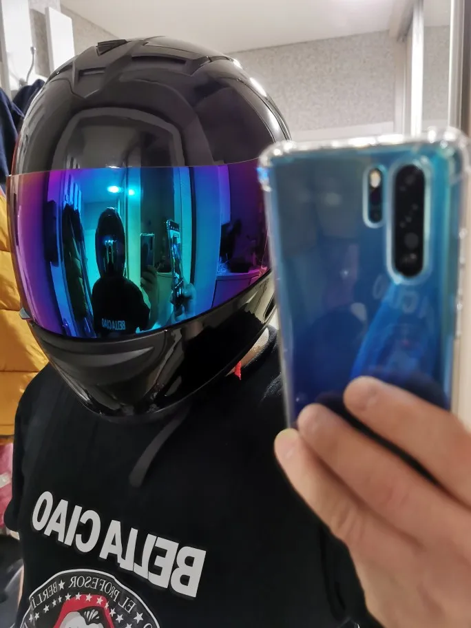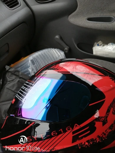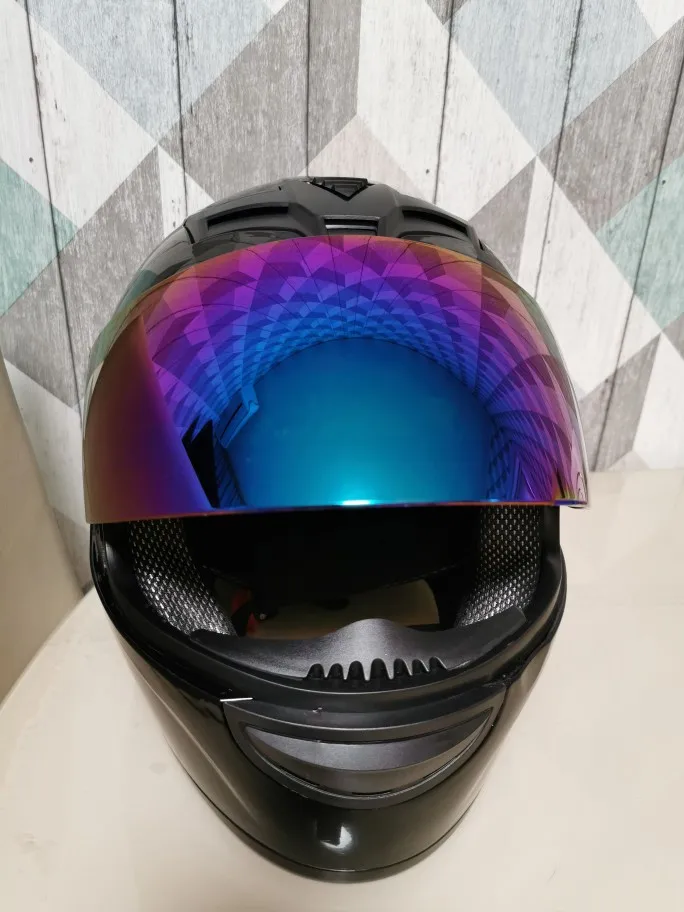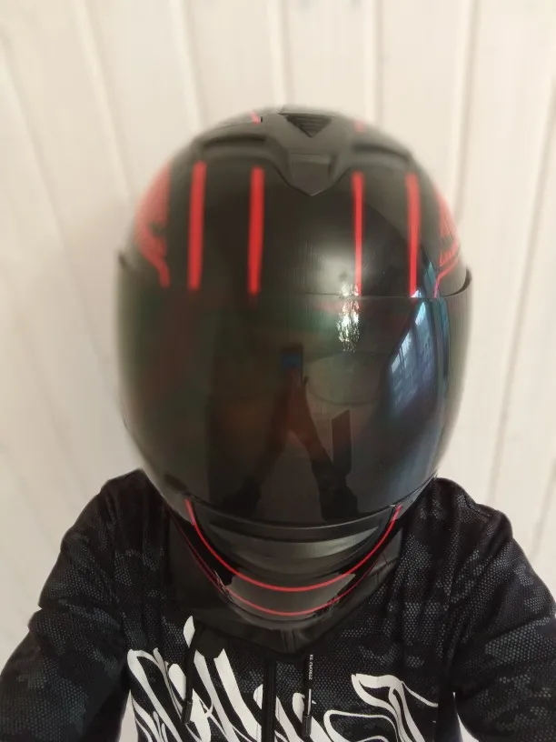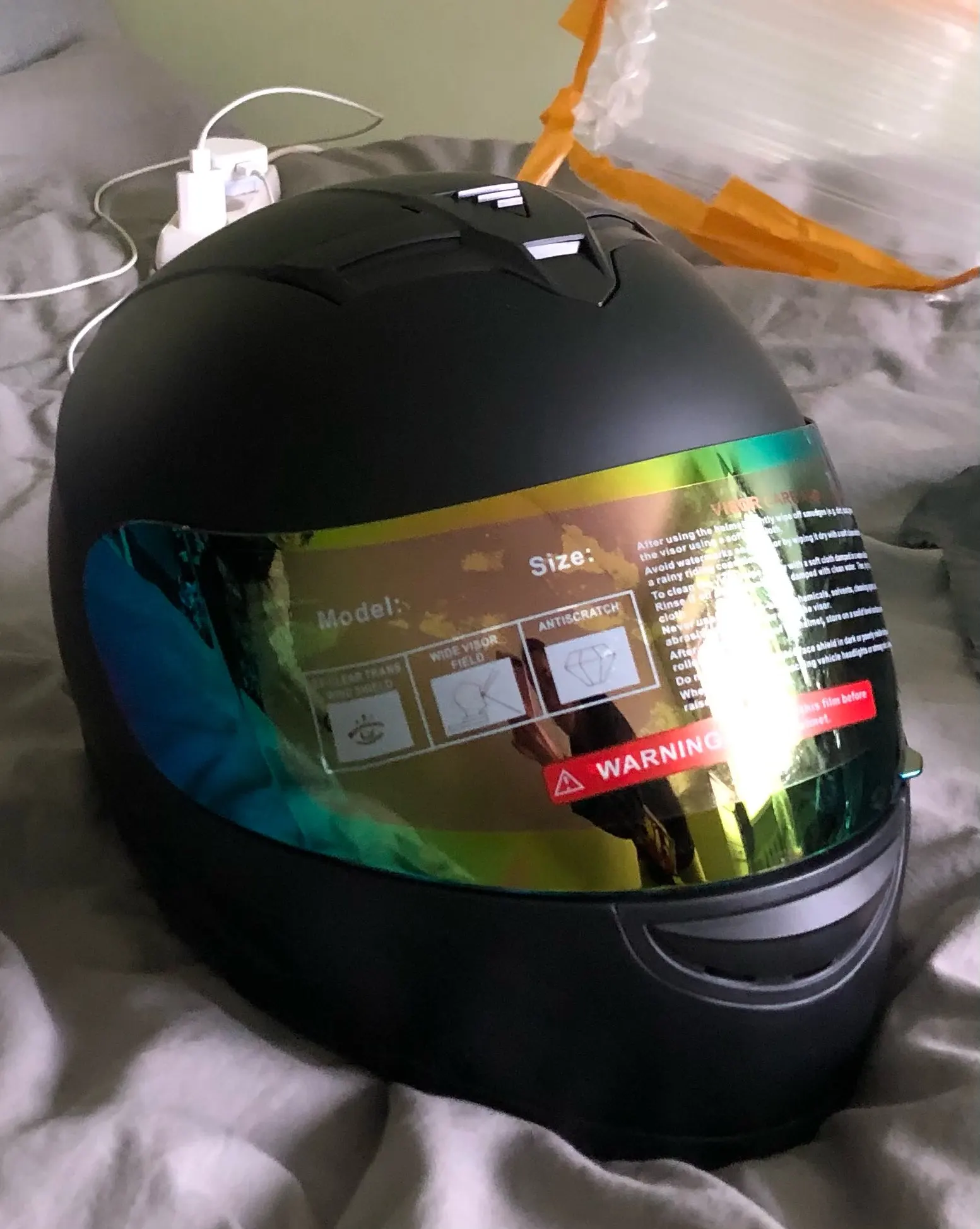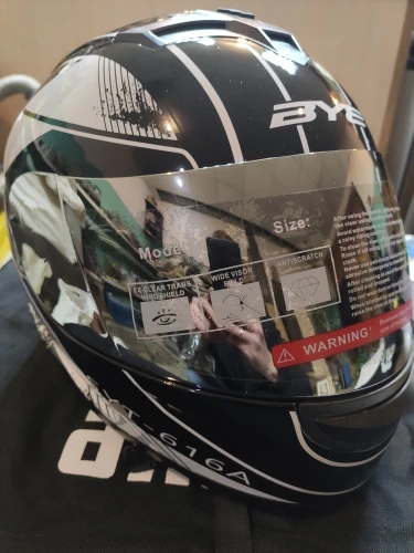 Товар доставляется в защитном воздушном покрытии. Было очень небольшое царапание на козырьке, не большое дело. Серебряный козырек сильно тонирован и не подходит для использования в ночное время. Товар имеет сильный химический запах, поэтому, пожалуйста, проветрите его перед использованием.