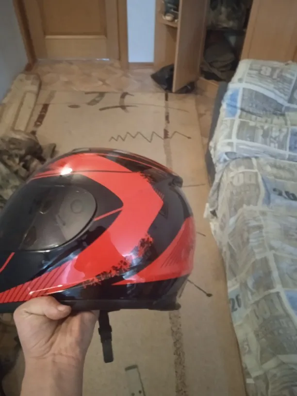 товар соответствует описанию,но он как новогодняя игрушка упал и усе. купите лучше подороже шлем, берегите себя. этом шлем игрушка на самокате кататся. есть у меня шлемы хорошие, этот купил чтоб мотоцыклы проверять возле гаражей ,а то иногда гайцы рядом стоят. а новые хорошие шлемы не хочется пачкать мазутом.