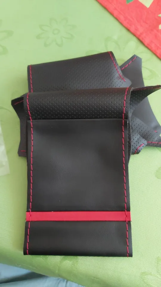 Черная замша DIY красный маркер Вручную прошитый чехол рулевого кол...