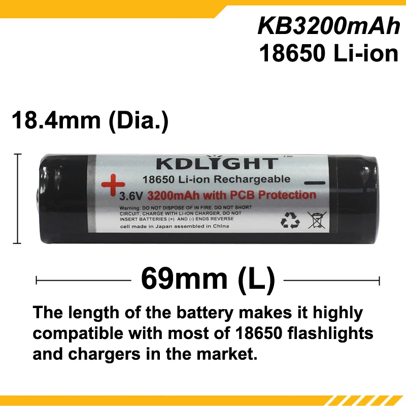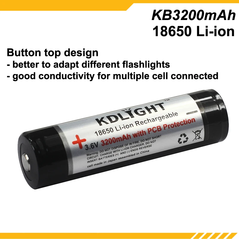 KDLIGHT KB3200mAh 3,6 V 3200mAh перезаряжаемая литий-ионная батарея 18650 с печатной платой