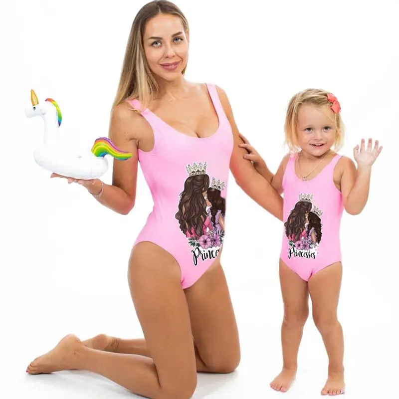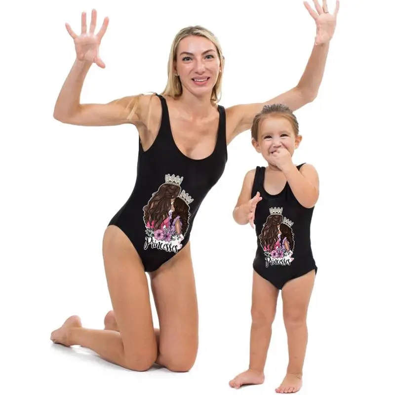Платья для мамы и дочки, для родителей и детей, сплошной купальник с открытой спиной, пляжная одежда