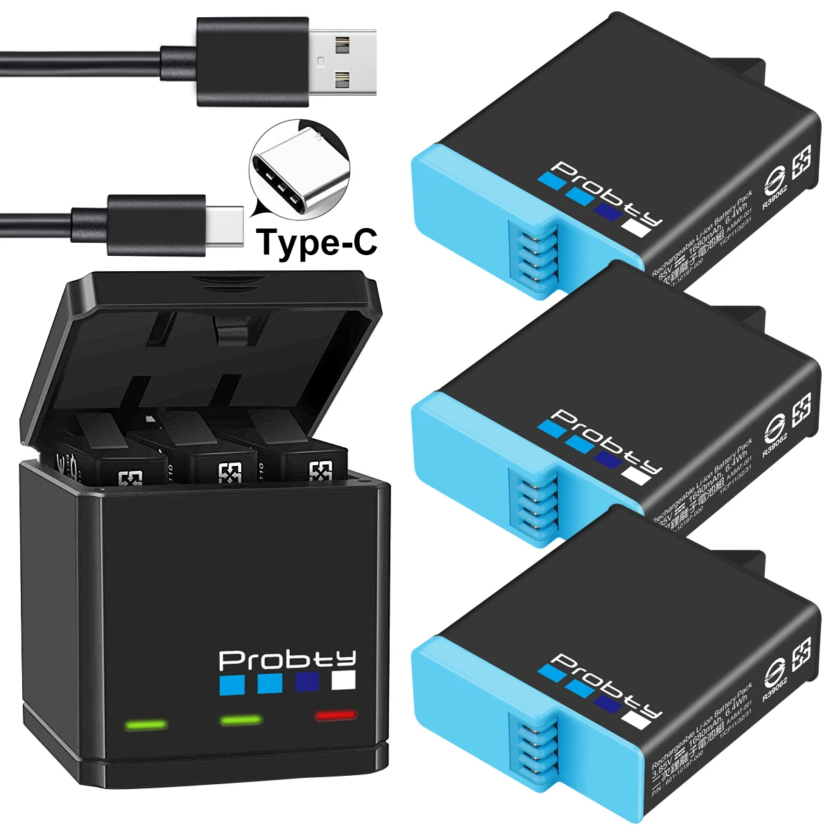 Зарядное устройство Probty для Gopro Hero 8, комплект из 3 аккумуля...