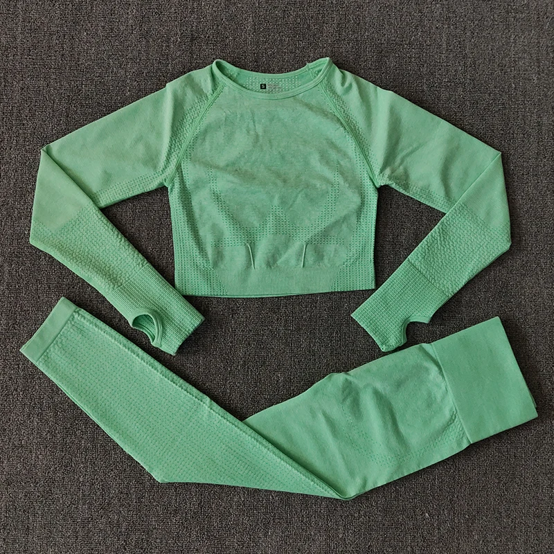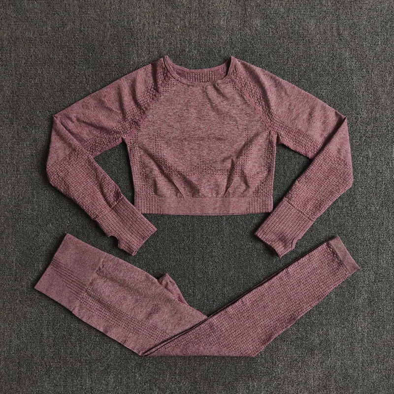 Женская спортивная одежда, бесшовный комплект для йоги, женская одежда для тренажерного зала, Топ с длинным рукавом и леггинсы с высокой талией, спортивные костюмы