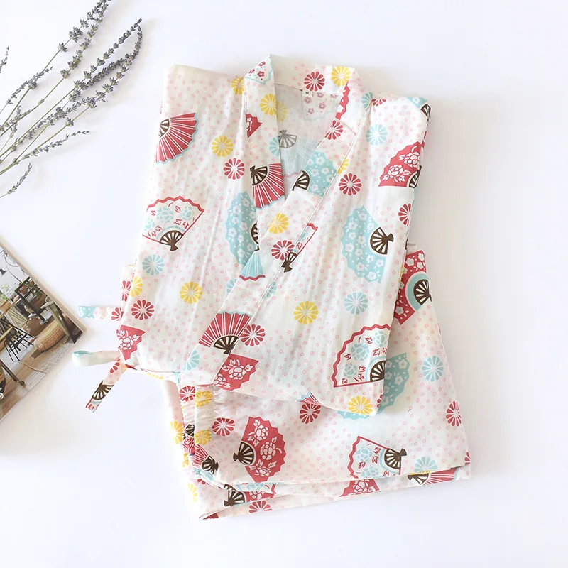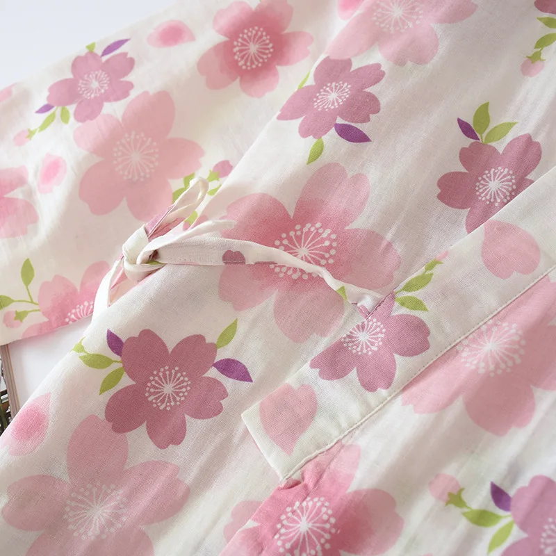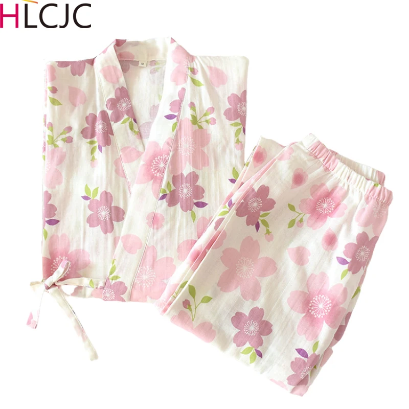 Пижамный комплект с принтом сакуры, свободные японские кимоно, Пижама для женщин, женская летняя хлопковая марлевая Милая Домашняя одежда, 2020