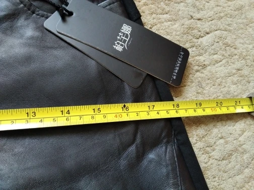 На об 92 см размер S велик, единственная отметка о размере - это бирка с цифрой 21 ( в отзывах 22 размер это L, что очень странно). На рост 163 коротковаты. Качество хорошее, кожа натуральная, идёт на тканевом подкладе. Сам фасон несуразный, скорее всего.
