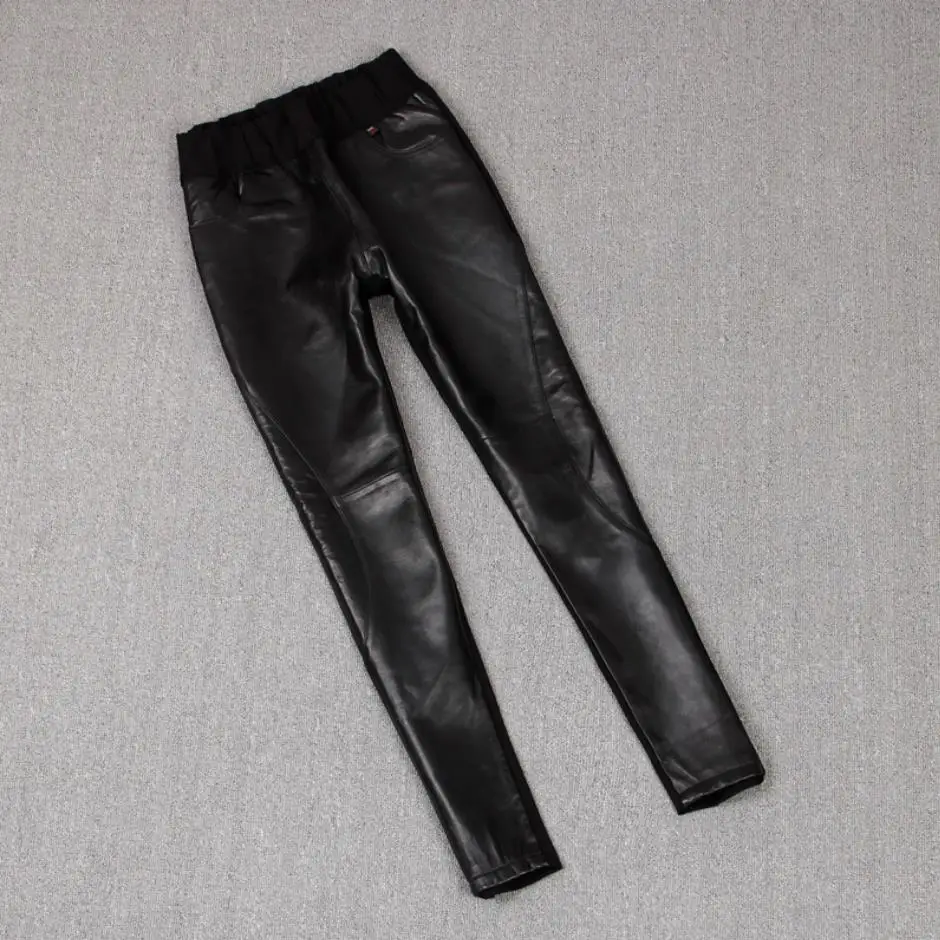 Женские длинные брюки из натуральной овечьей кожи в английском стиле, весенние тонкие брюки-карандаш с высокой талией, F1002