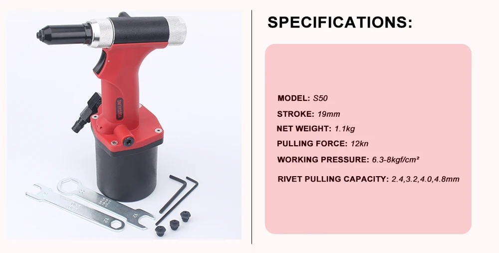 YOUSAILING S50 высокое качество пневматический пистолет со слепой заклепкой красный пневматическая клепальная машина 2,4 мм 3,2 мм 4,0 мм 4,8 мм промышленного уровня