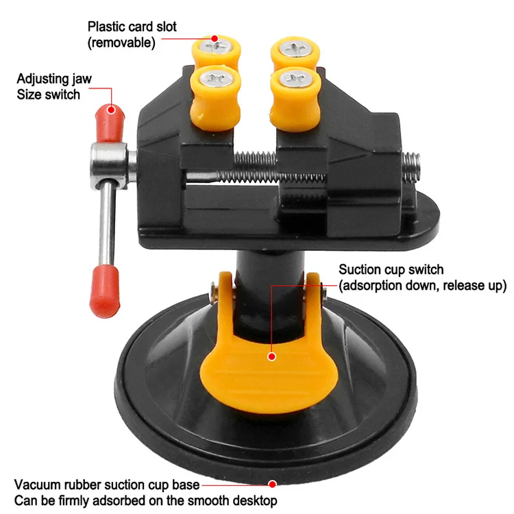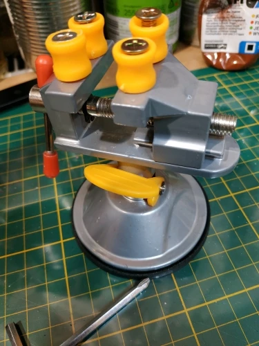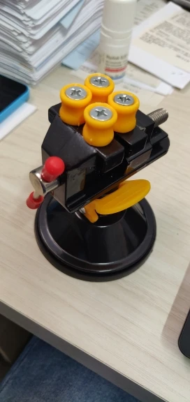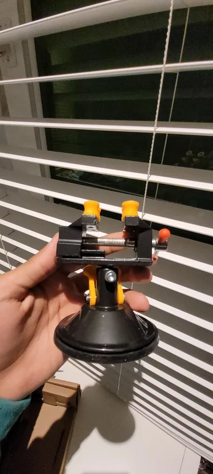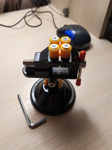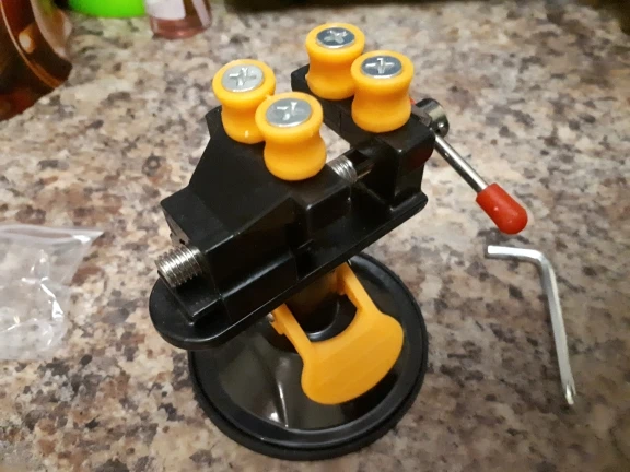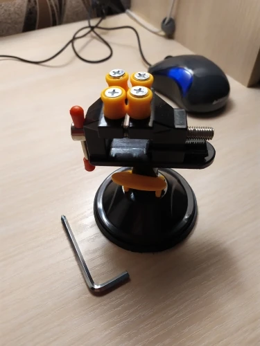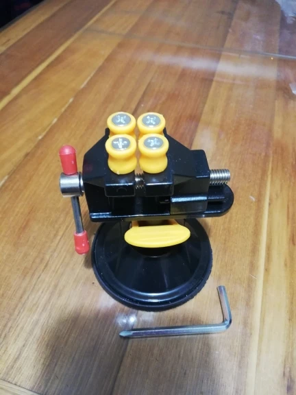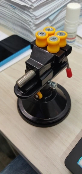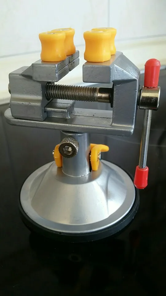 В общем неплохие тиски за эти деньги,можно поставить дополнительные губки из любого материала(сталь, стеклотекстолит,резина),плюс что вращаются на 360 , на поверхности присоска хорошо держит