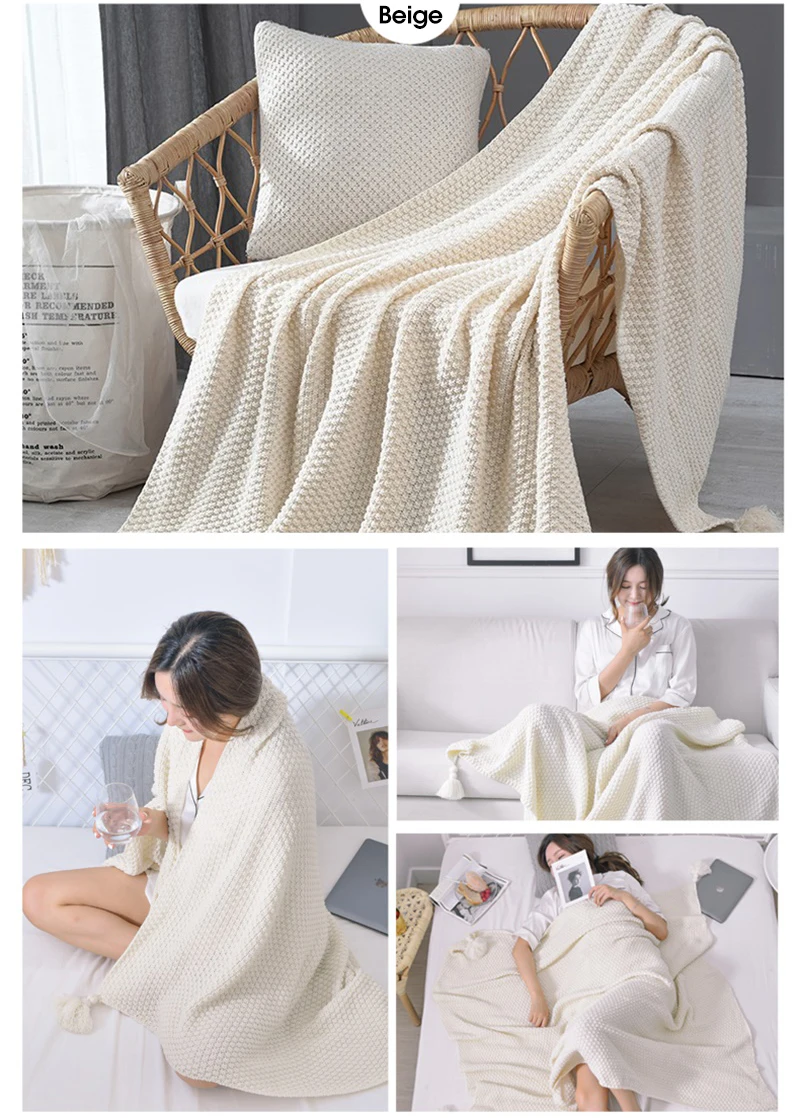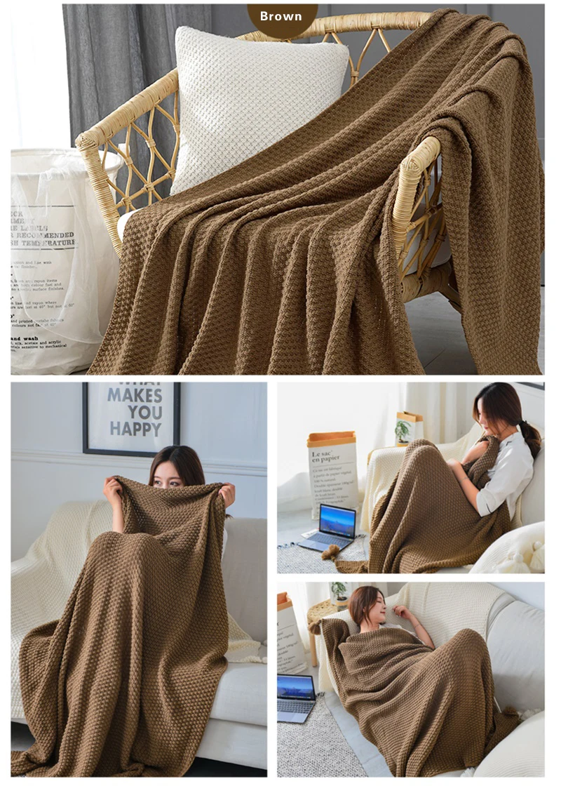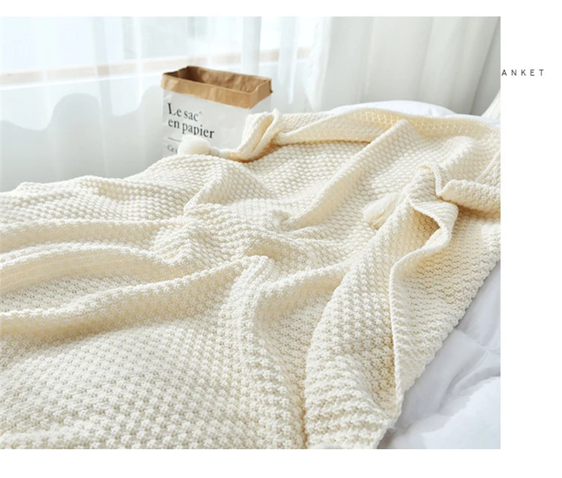 Вязаное одеяло в скандинавском стиле, теплый плед, короткое одеяло, для кровати, дивана, офиса, отдыха, дышащий гобелен