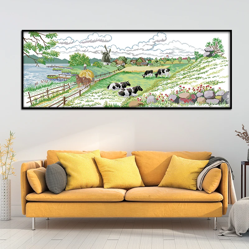 Наборы для вышивки крестиком, с принтом на пружине, до берега озера...