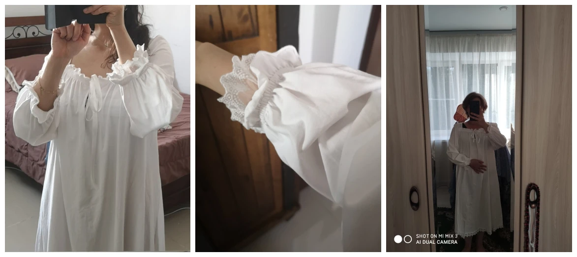 Это одна из лучших покупок на Али. Ночнушка просто шикарная. Пошита исключительно хорошо. На размер 44 взяла S и правильно сделала. Материал похож на плотный трикотаж, чуть-чуть тянется если потянуть, очень приятный к телу. На рост 152 длина до середины голени. Выгляжу в ней очень нежно и женственно. Снимать не хочется. С продавцом не общалась, отправил очень быстро.