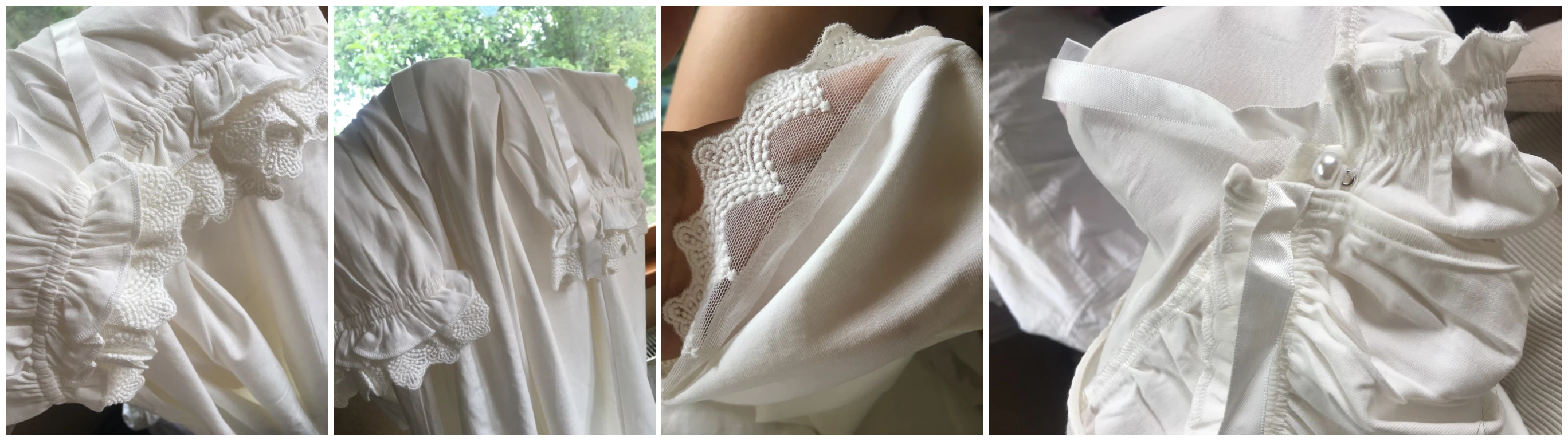 Очень красивое, нежное винтажное ночное платье. Аккуратно прошито, лишних ниток нет. Ткань качественная. Чувствую себя дамой из прошлого века в нем. Я безумно довольна! Пришло примерно за месяц. Спасибо продавец:)