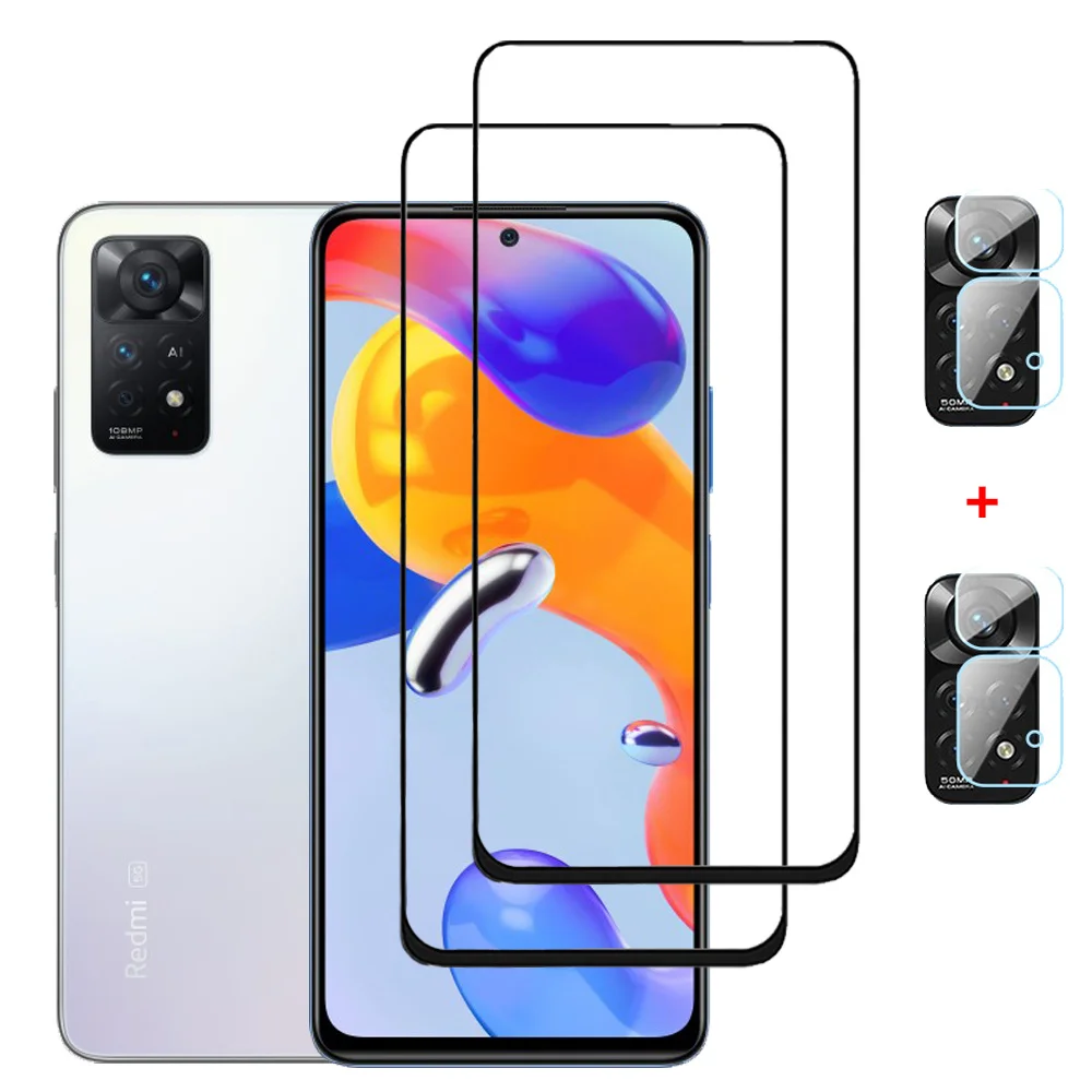 4 в 1 стекло для Redmi Note 11 Pro 5G Защитная пленка для экрана Xiaomi Redmi Note 11 защитное стекло на Redmi Note 11 10 9 10S 11S пленка сяоми редми ноут 11 про стекло Redmi Note 11 Pro 5G Glass Global