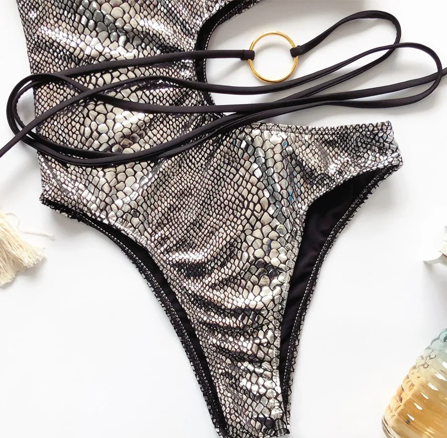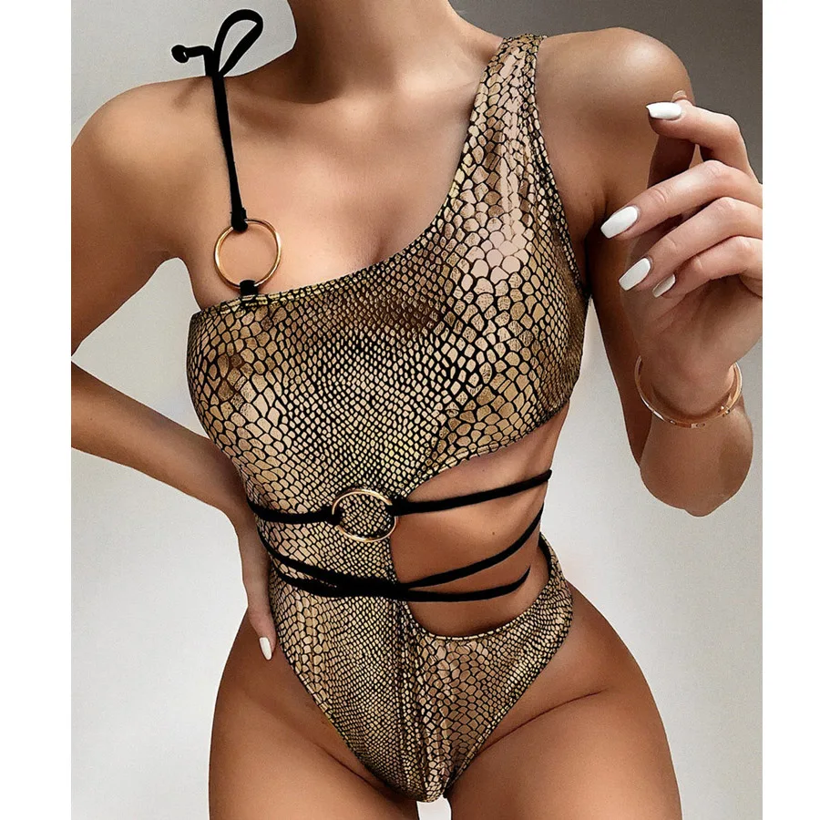 Сексуальный слитный купальник со змеиным принтом 2022, ажурные стринги, боди, монокини, бандажный купальник, женские купальники, купальный костюм