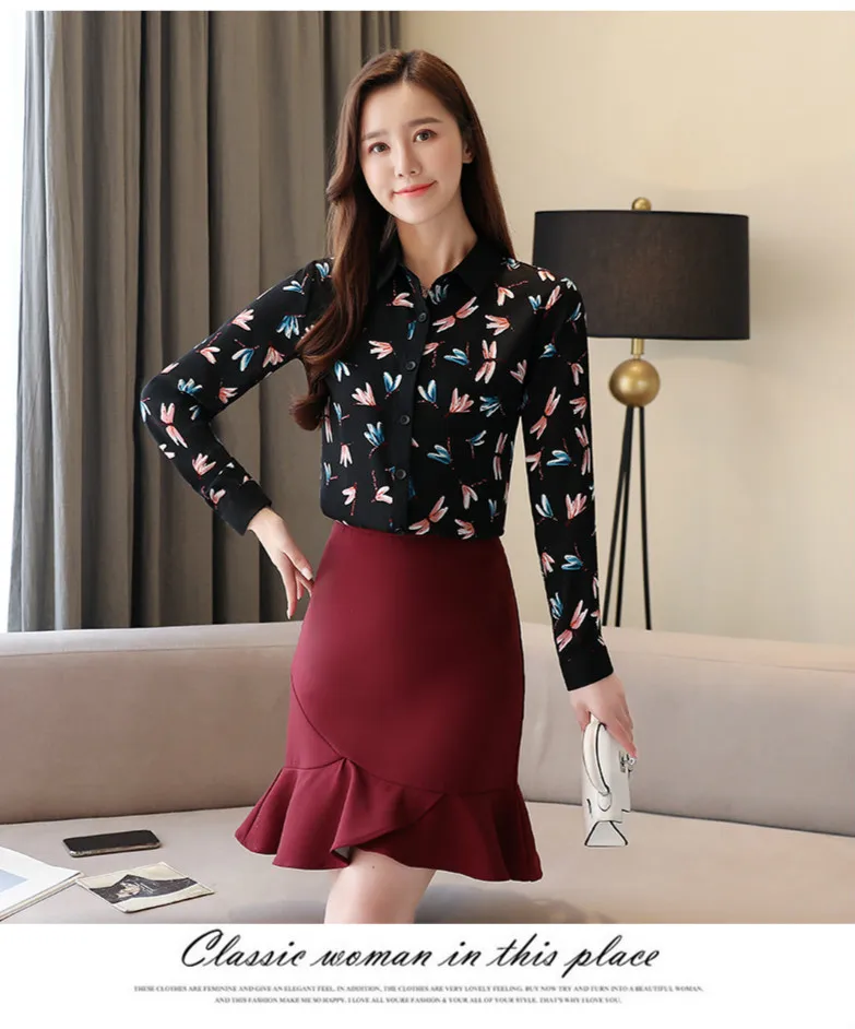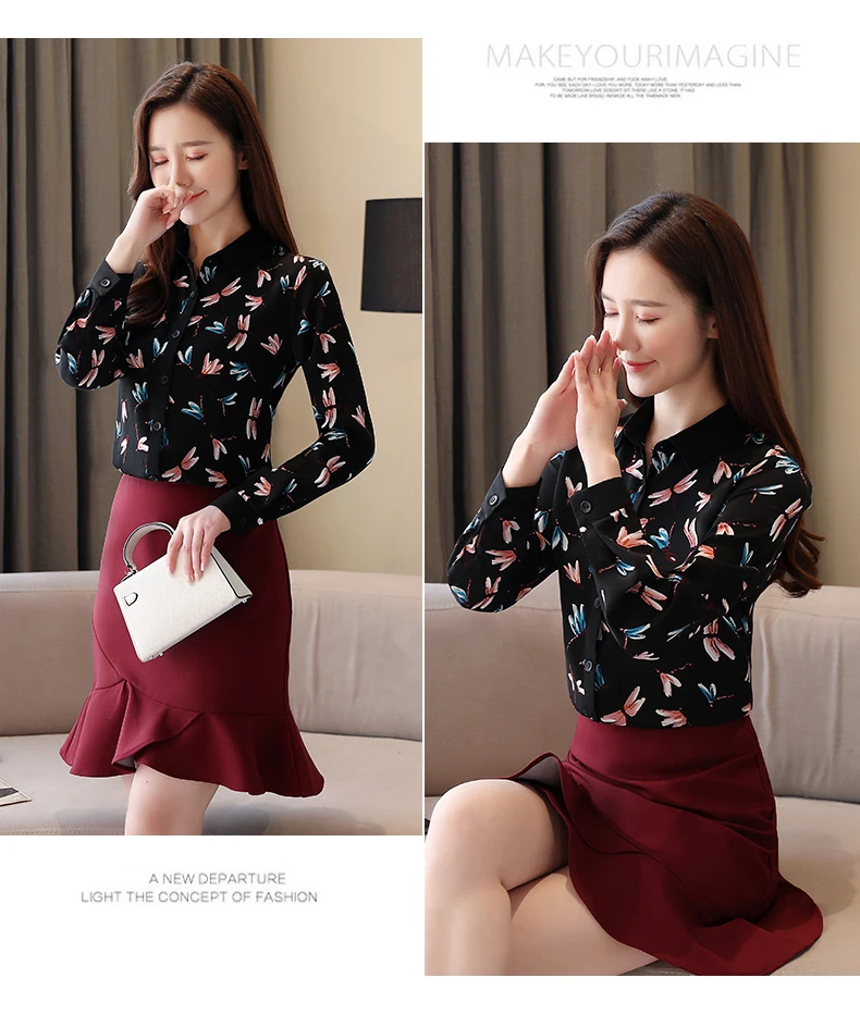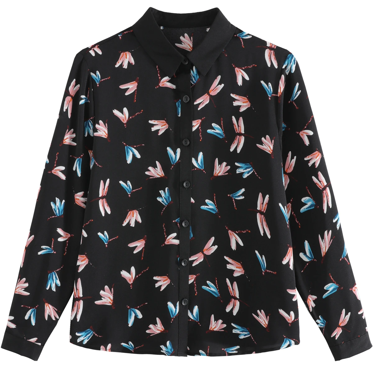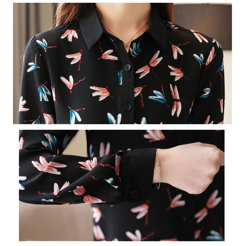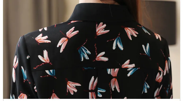 Блузка женская с длинным рукавом и кукольным воротником, Свободная шифоновая рубашка с принтом в стиле ретро, 2021 50, весна 8475