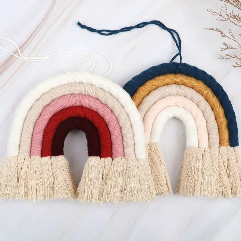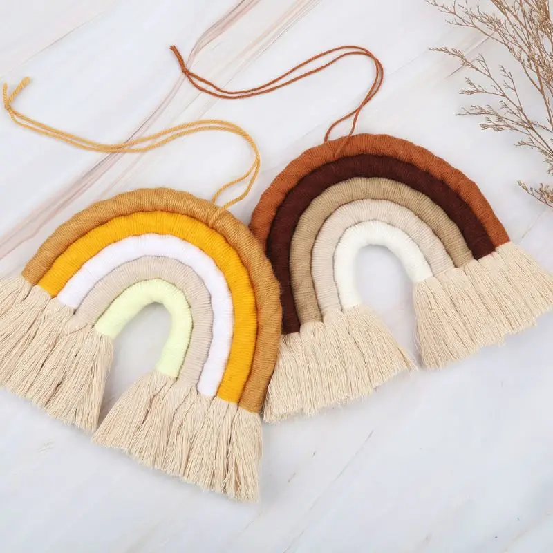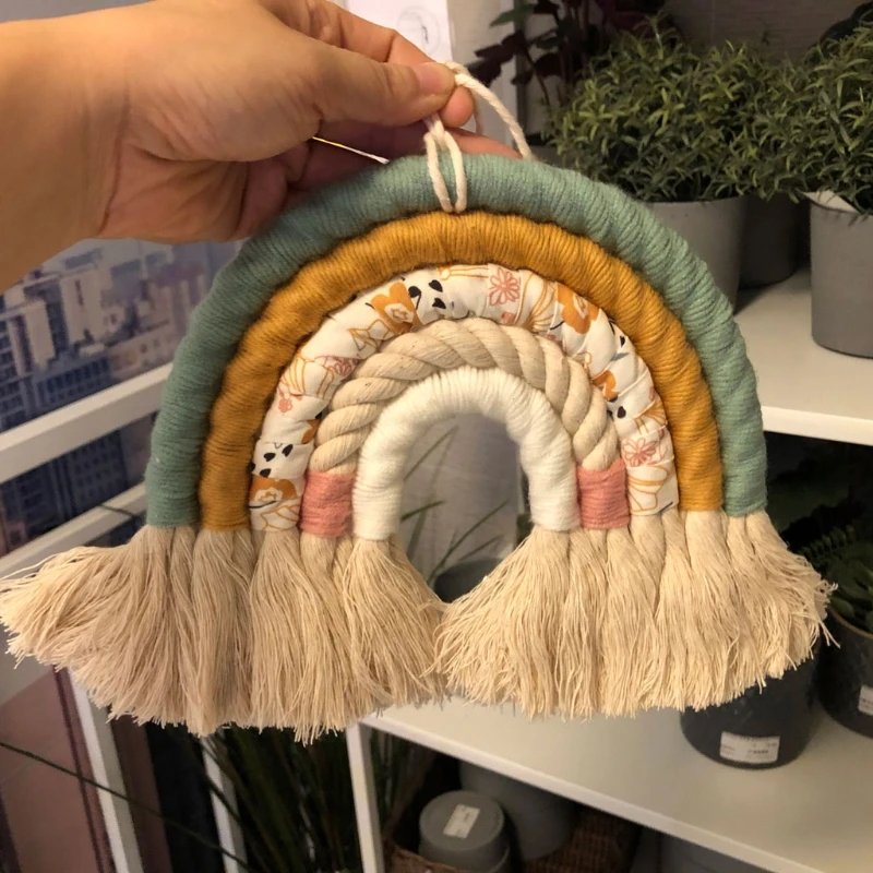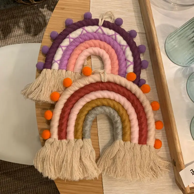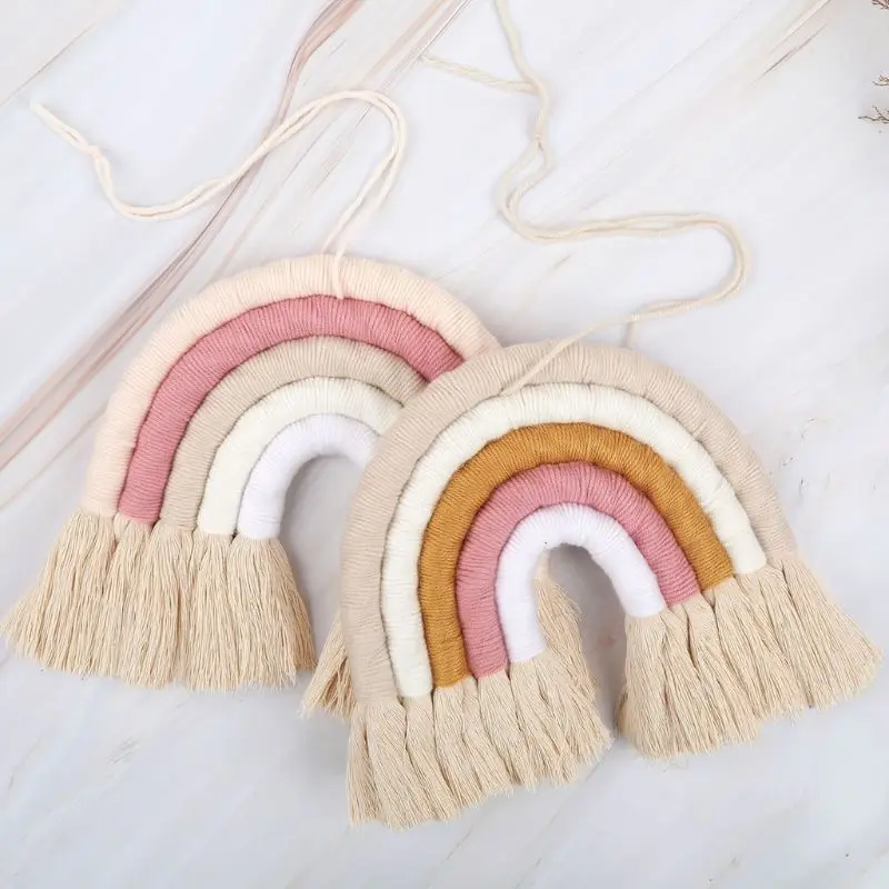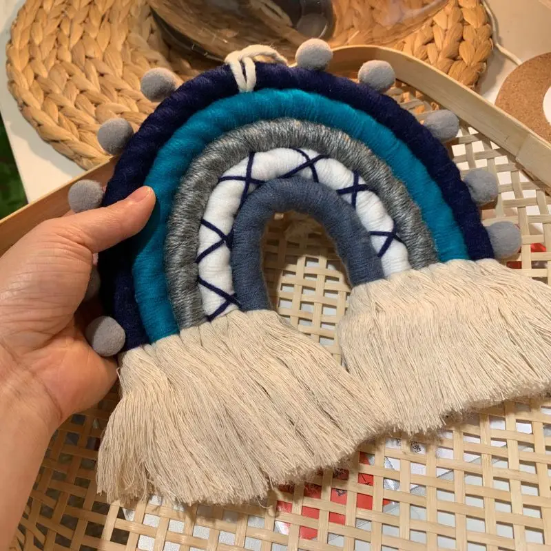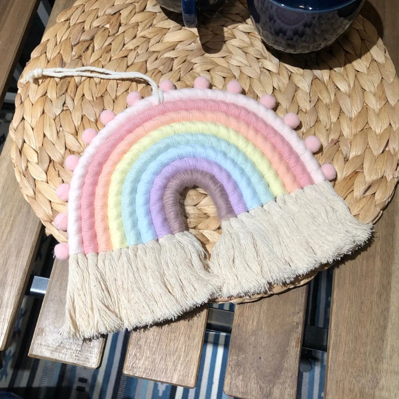 Радужный настенный гобелен макраме, 5 слоев, цветной гобелен, плетеная кисточка, Настенная игрушка для украшения детской комнаты, для девочек