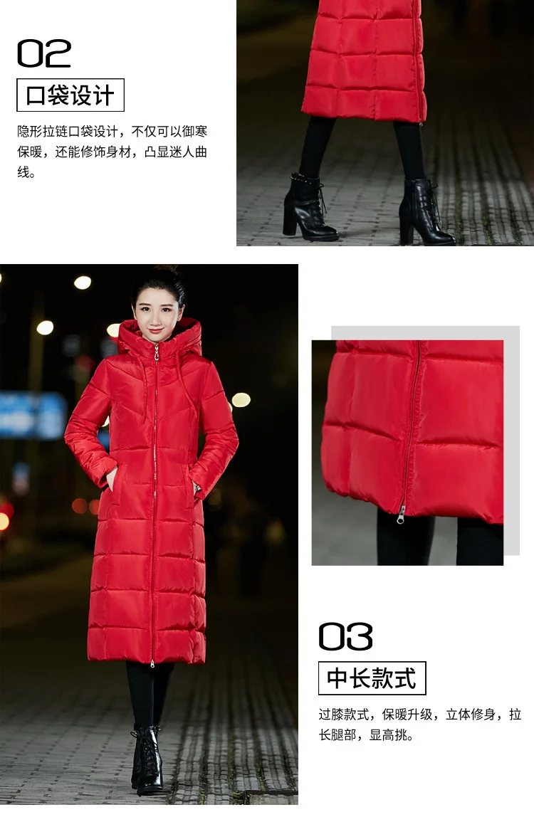 Теплое зимнее пальто, женская толстая зимняя куртка, женское хлопковое пальто с капюшоном, корейское тонкое пальто размера плюс 6XL, серое, красное стеганое длинное пальто
