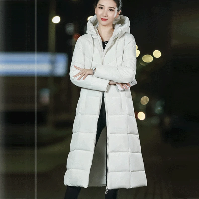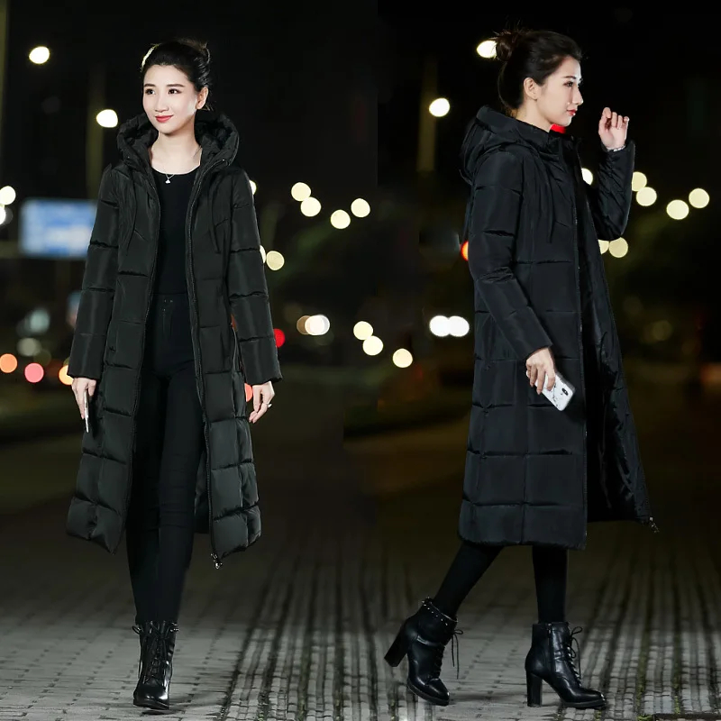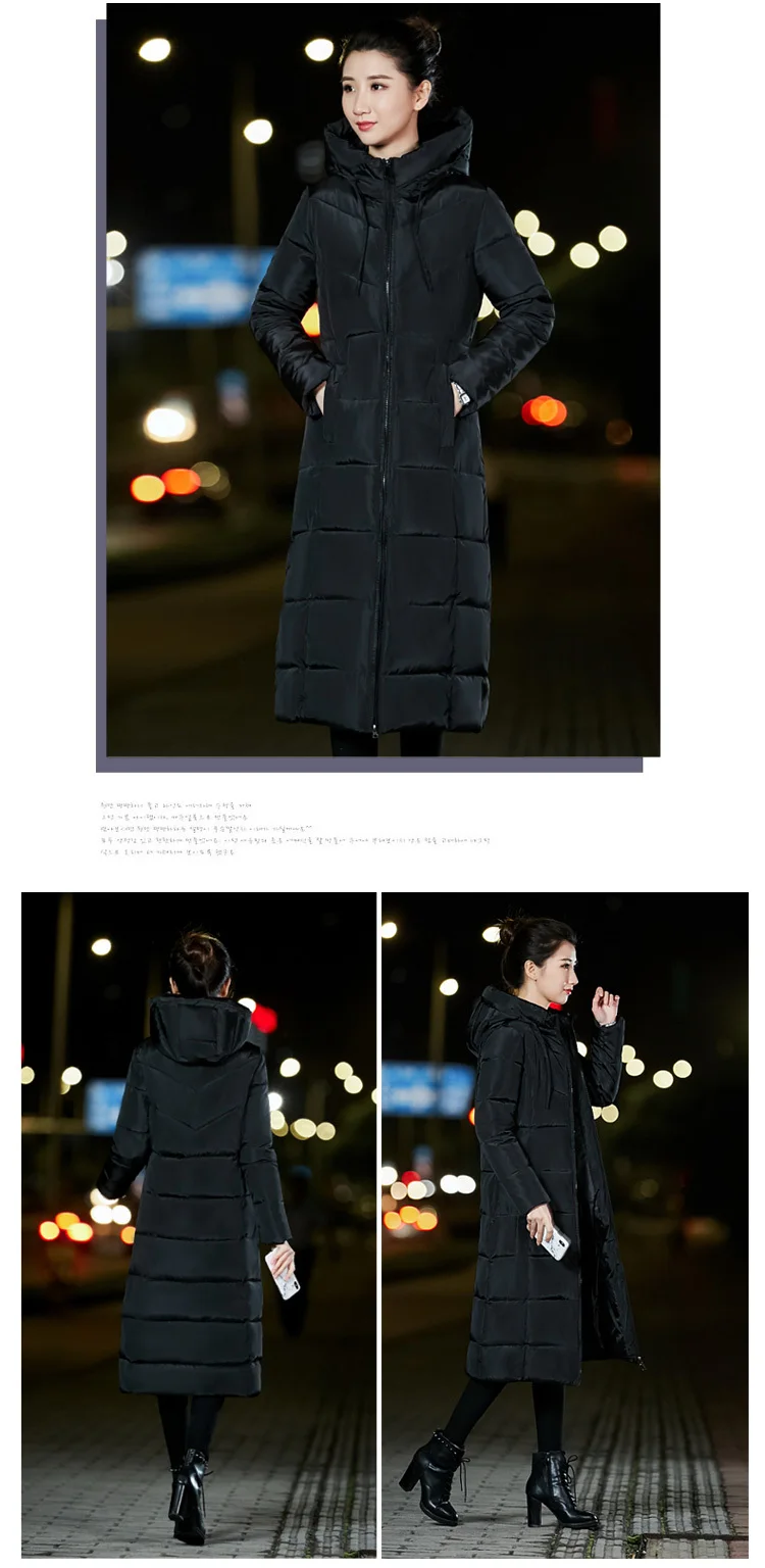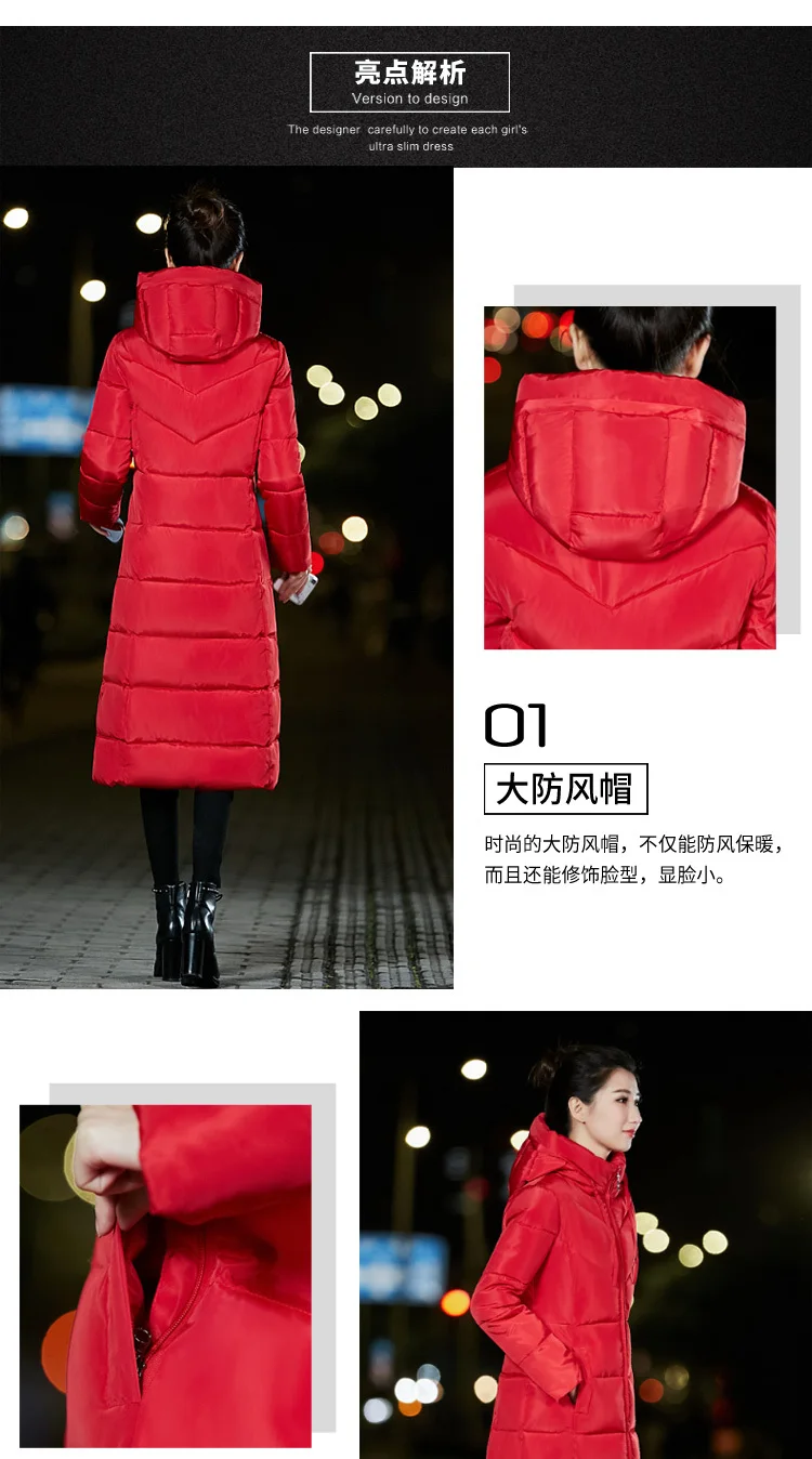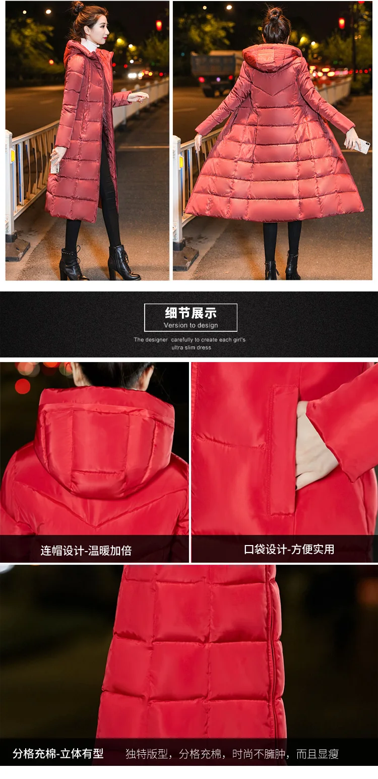 Теплое зимнее пальто, женская толстая зимняя куртка, женское хлопковое пальто с капюшоном, корейское тонкое пальто размера плюс 6XL, серое красное Стеганое пальто, длинные пальто