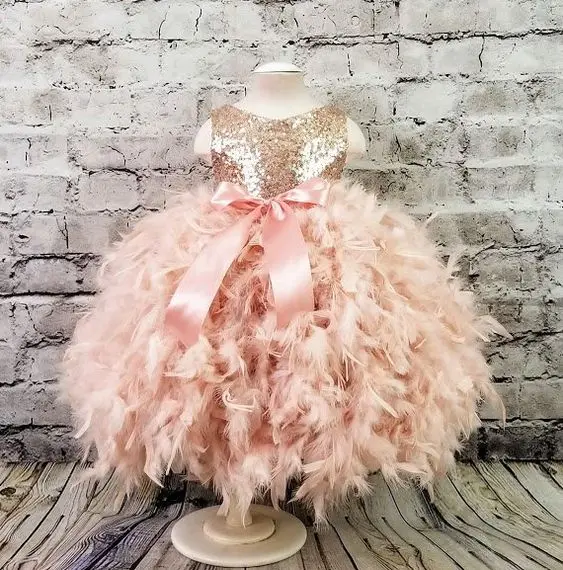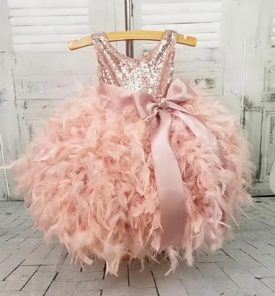 Красивые платья для девочек с цветами, топ с блестками и перьями, н...