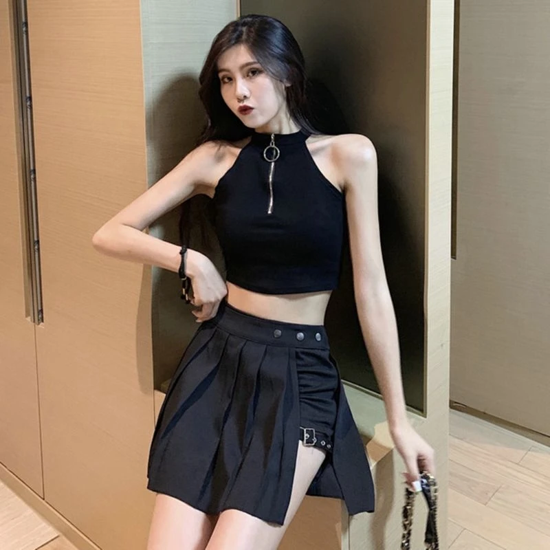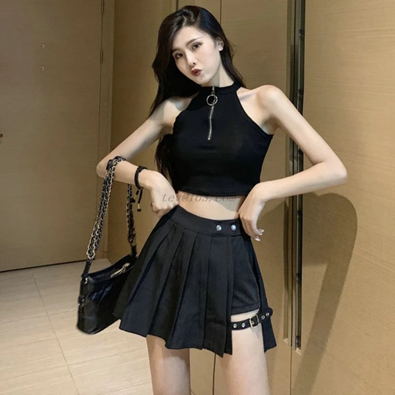 Сексуальная Готическая Женская юбка с завышенной талией, черные летние юбки в стиле панк, юбка с шортами для девочек