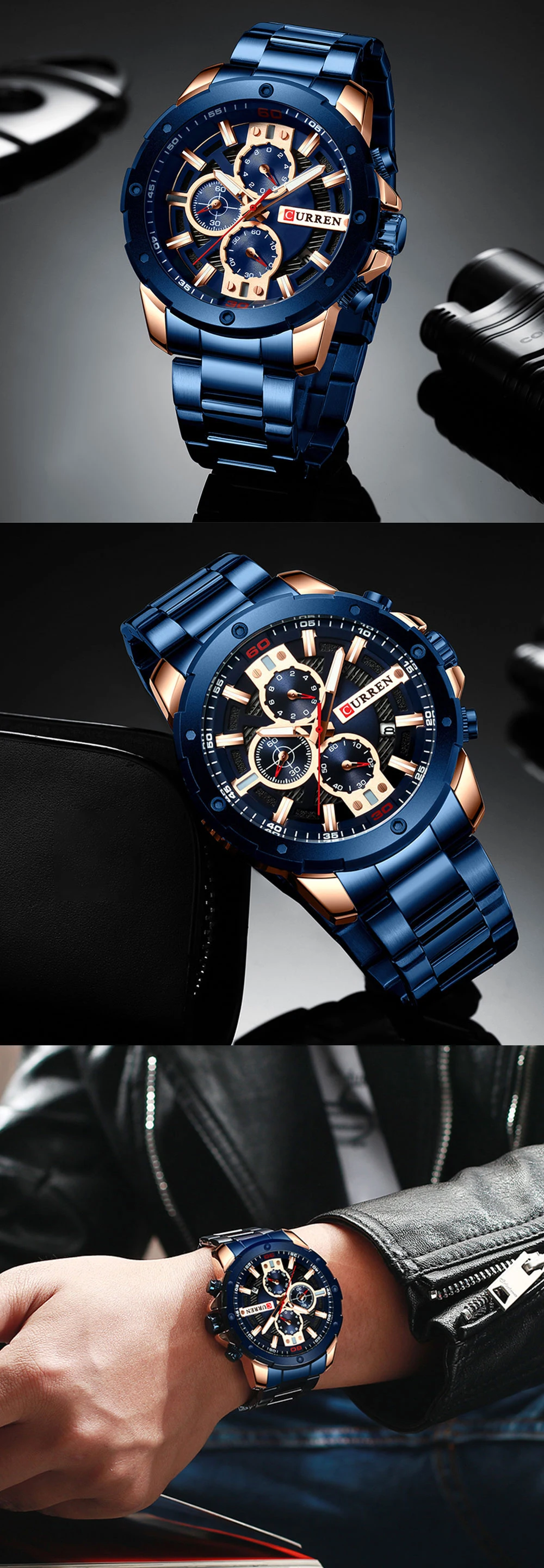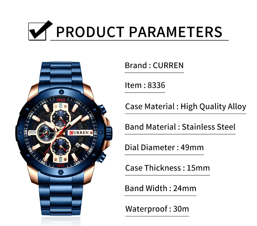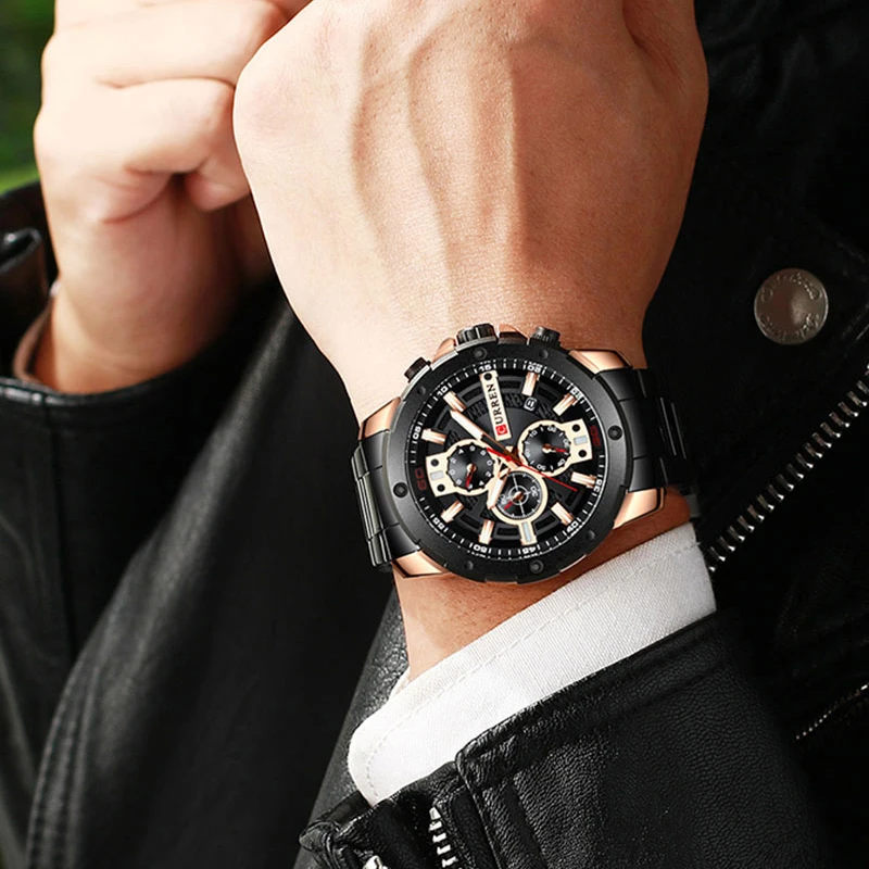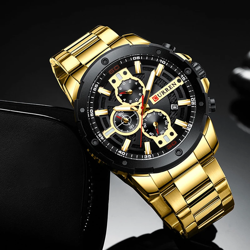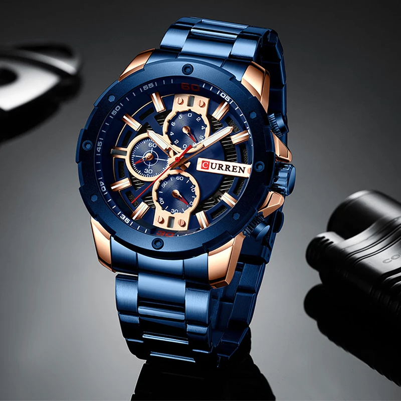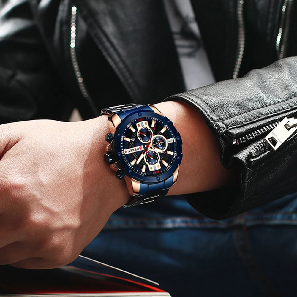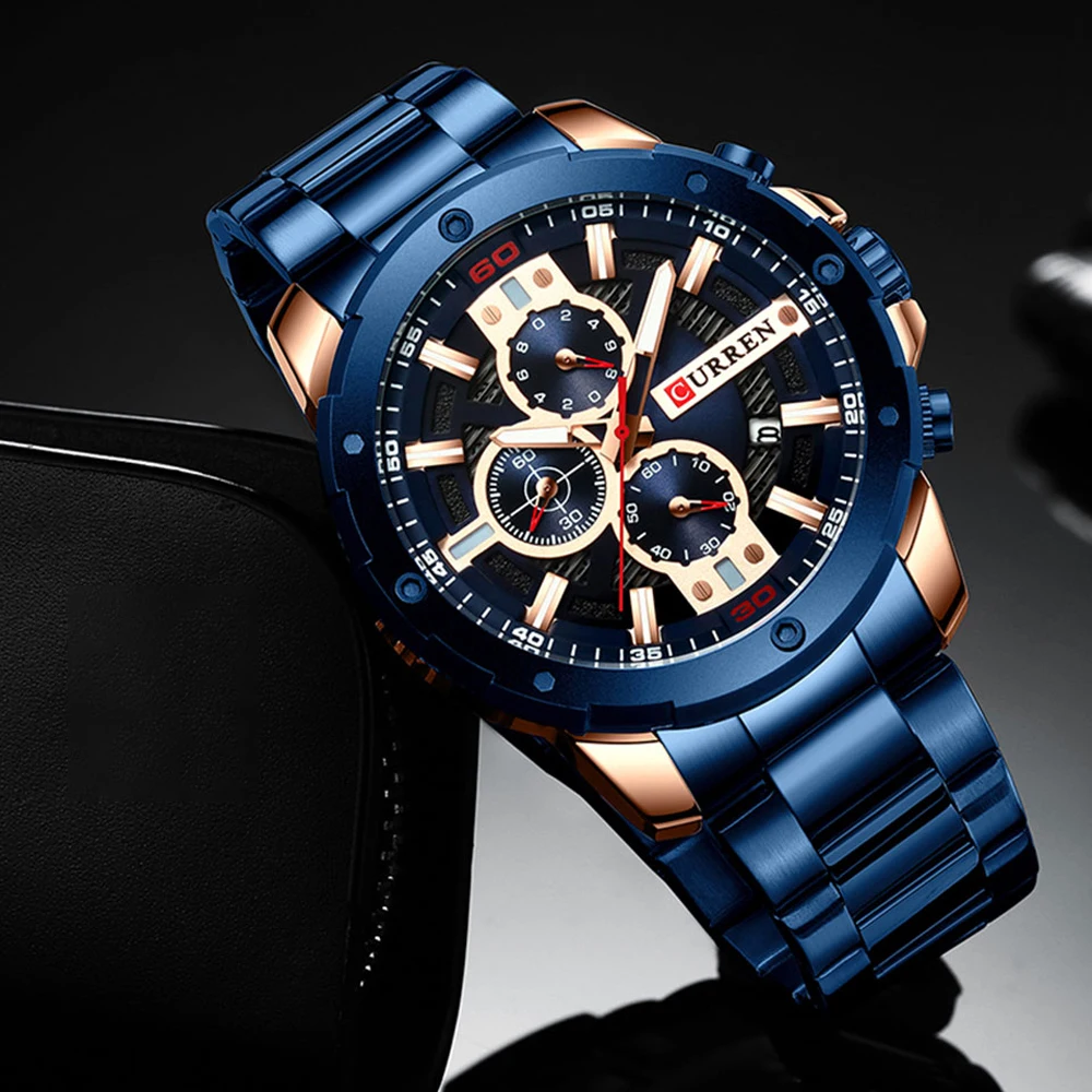 CURREN Часы мужские из нержавеющей стали Кварцевые наручные часы Во...