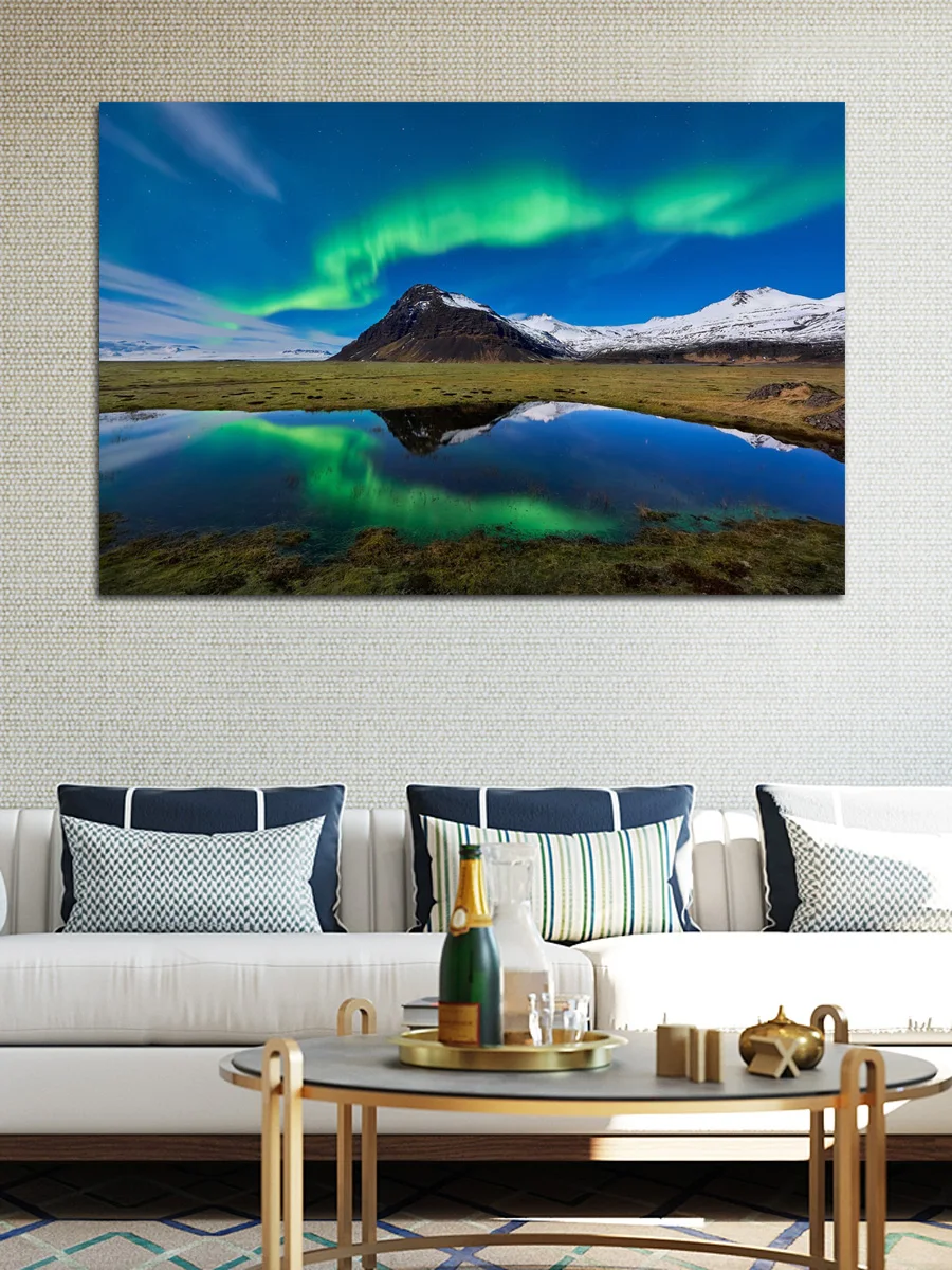 Aurora borealis северсветильник горная природа отражение фотография Декор для дома гостиной спальни KL880