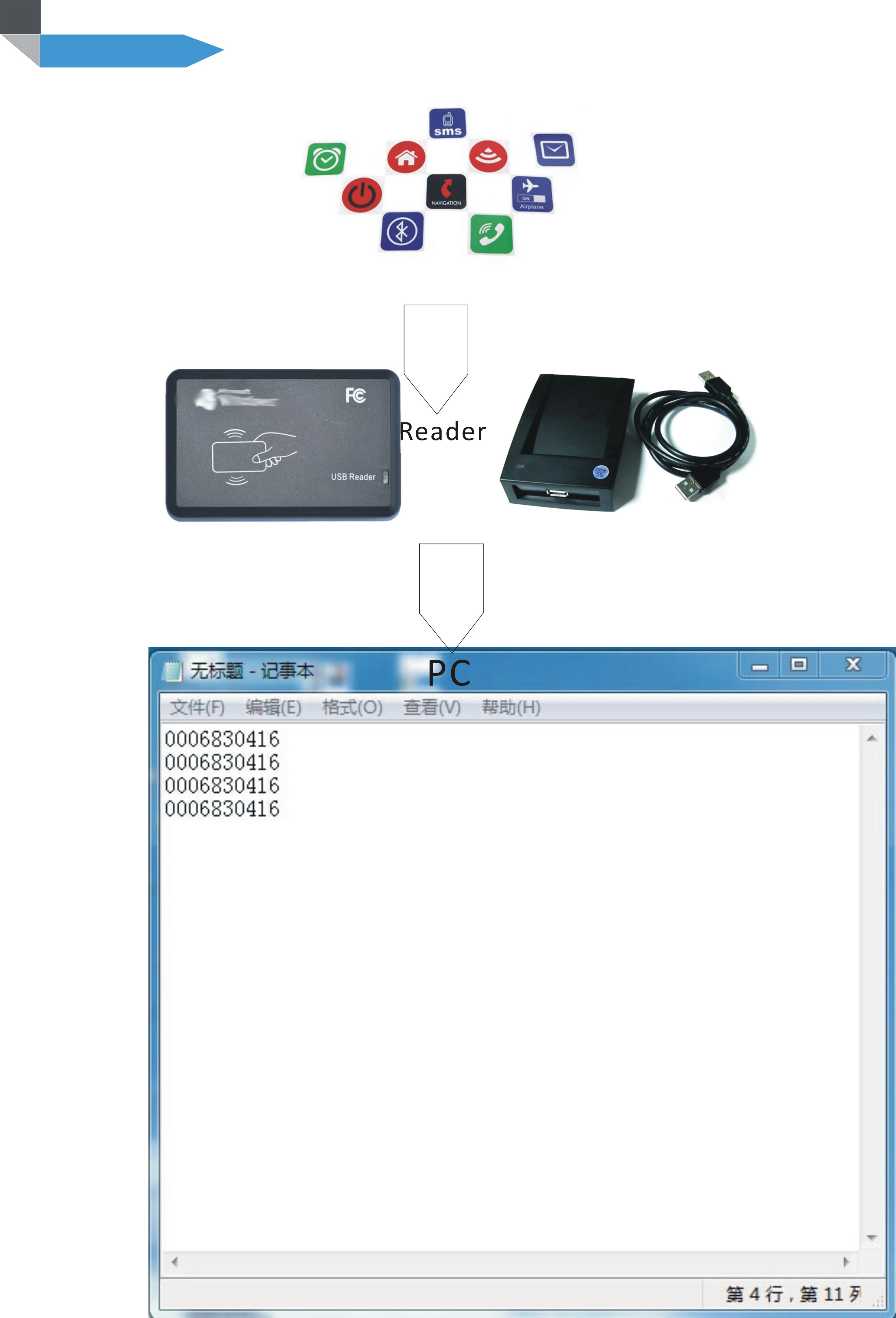 1 * Считыватель (USB-KBW)1 * кабель2 * карта для тестирования