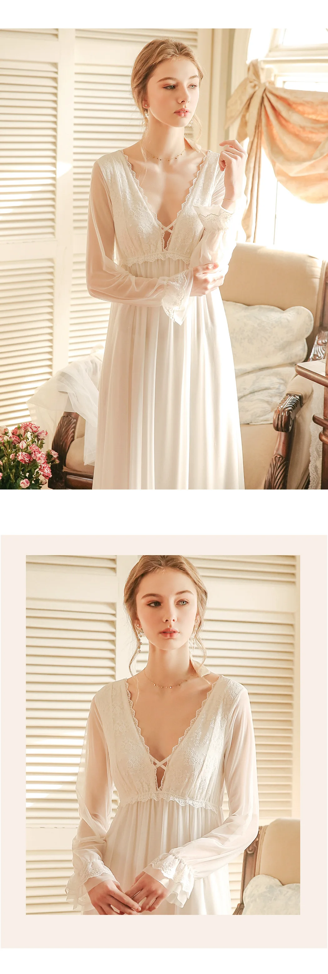 Женская ночная рубашка, кружевная, с длинным рукавом