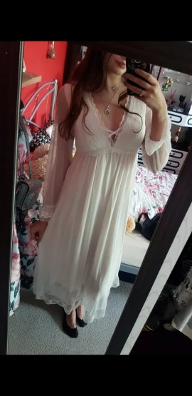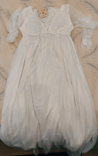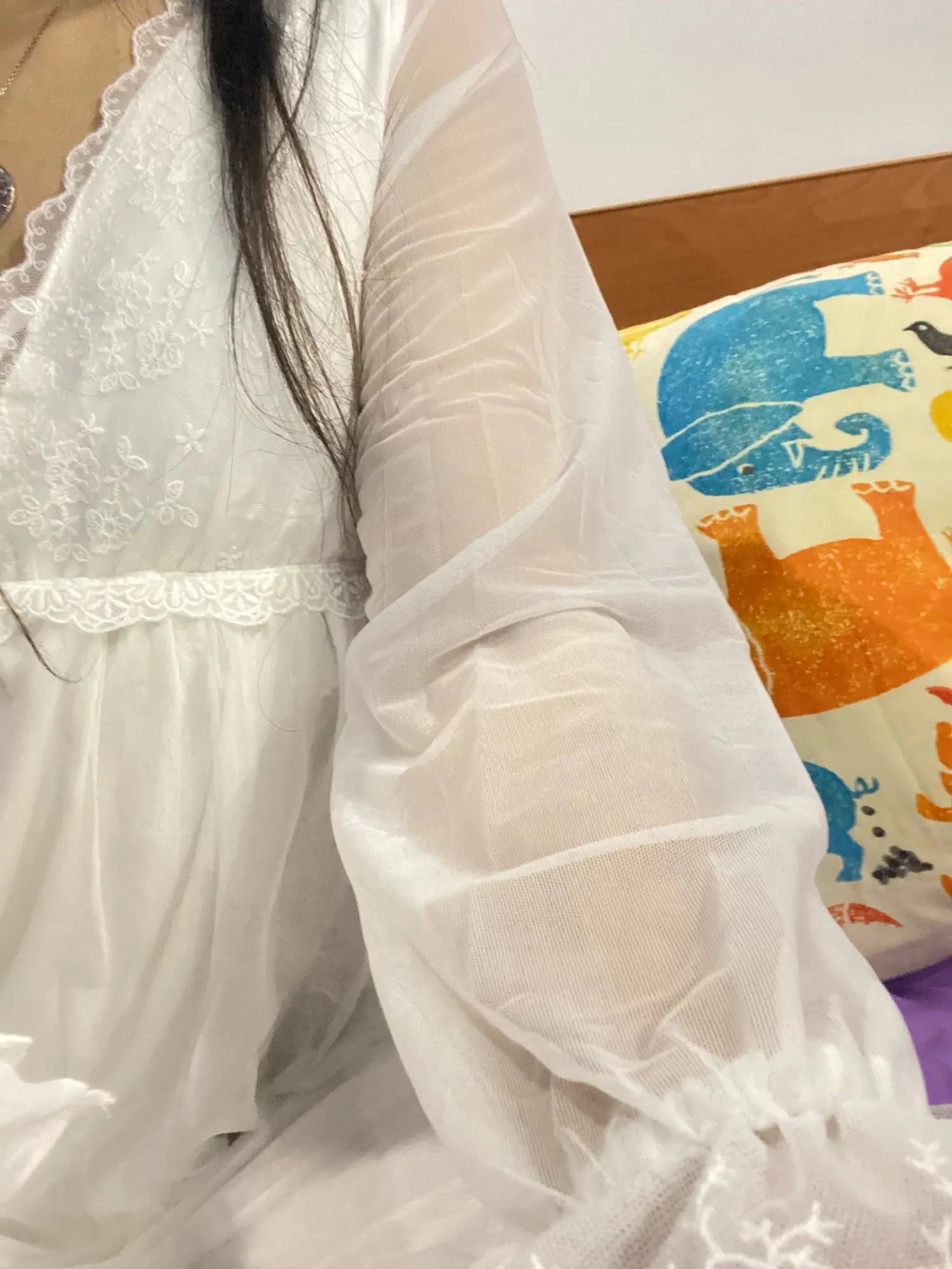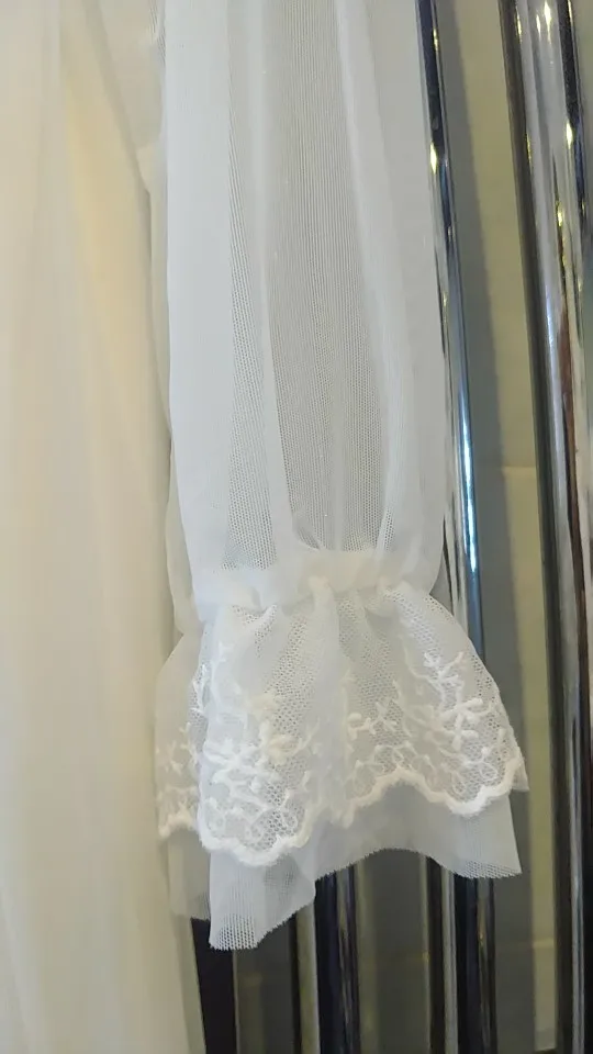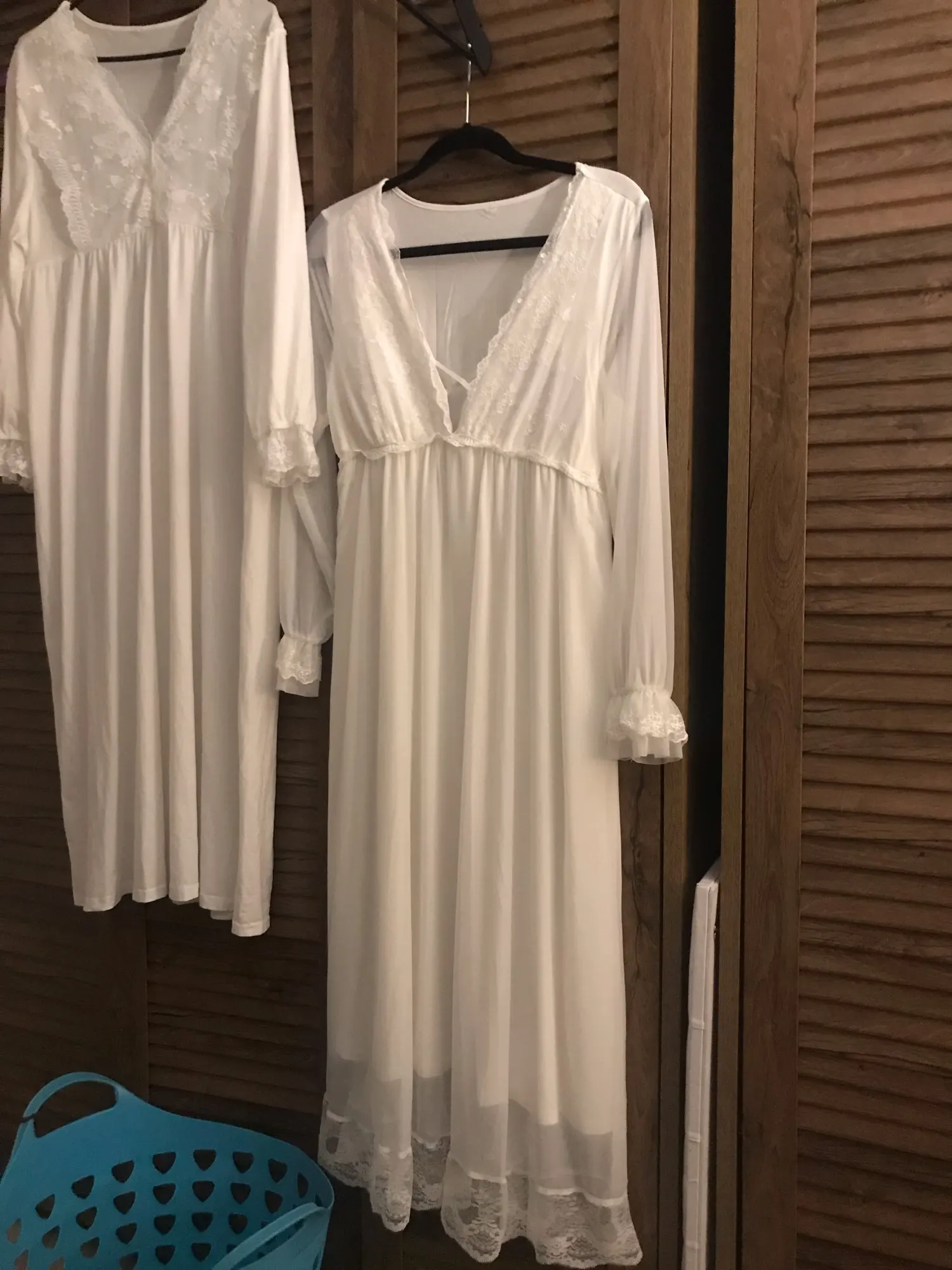 Чудесная ночная рубашка теплого белого цвета. Хорошее качество-не ожидала такого встретить на Али за такие деньги. На рост 176 см грудь только-только вошла по высоте,даже немного приходится ее приподнимать. В целом очень понравилась рубашка:нежная. Рукава немного коротковаты,но для ночной рубашки это непринципиально.
