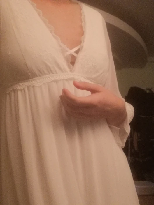 Очень красивая ночнушка! Приятная ткань, комфортно спать и красиво. Правда чтобы было как на фото, надо брать совсем большой размер. У меня грудь в облипку и рукава коротковаты, но не критично. Кормить удобно в ней