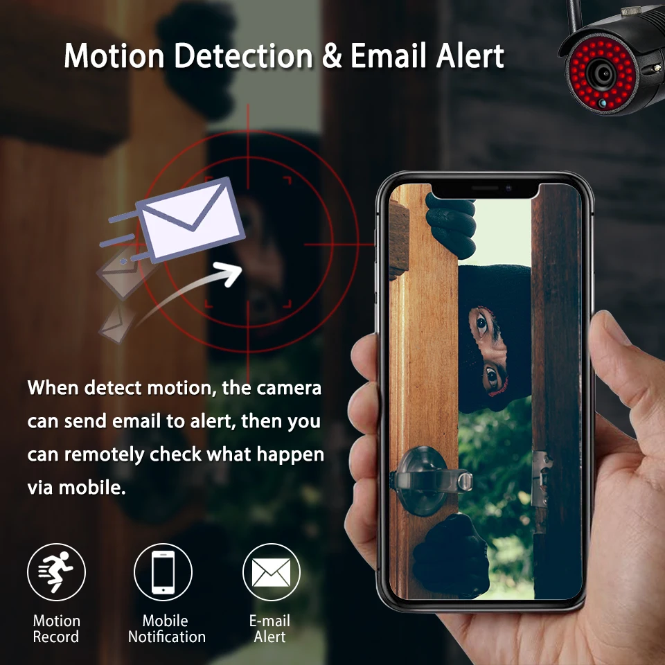 Обнаружение движения/сигнал тревогиНастройте свой собственный план обнаружения и зону для каждой камеры в соответствии с вашими потребностями.При обнаружении движения интеллектуальные уведомления с оповещениями по электронной почте/моментальным снимкам будут отправлены на ваш смартфон через приложение iPhone/ Android.