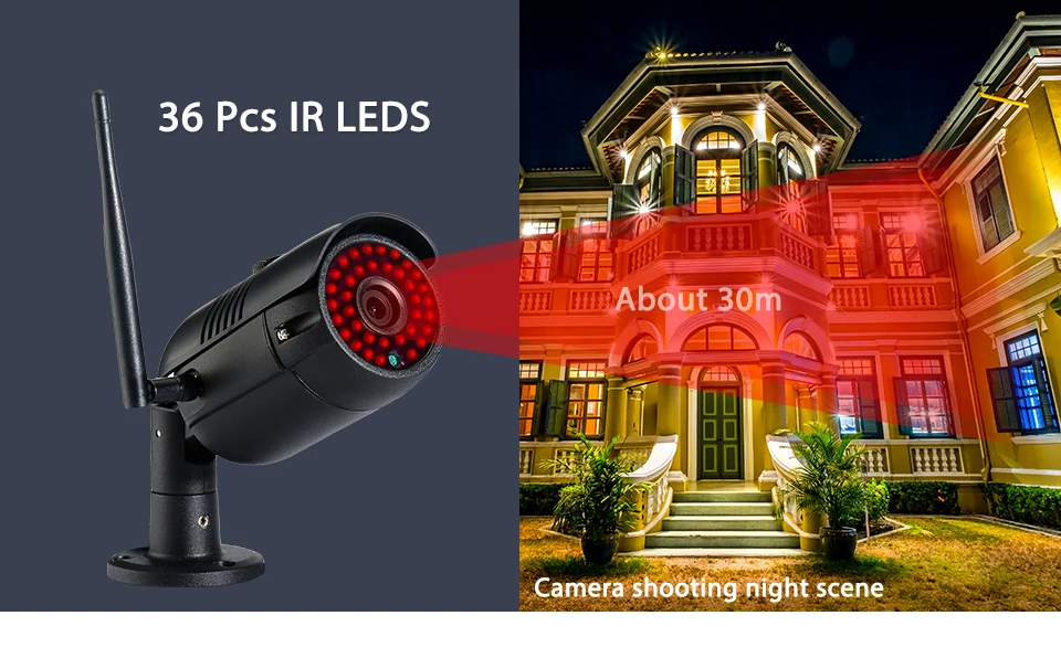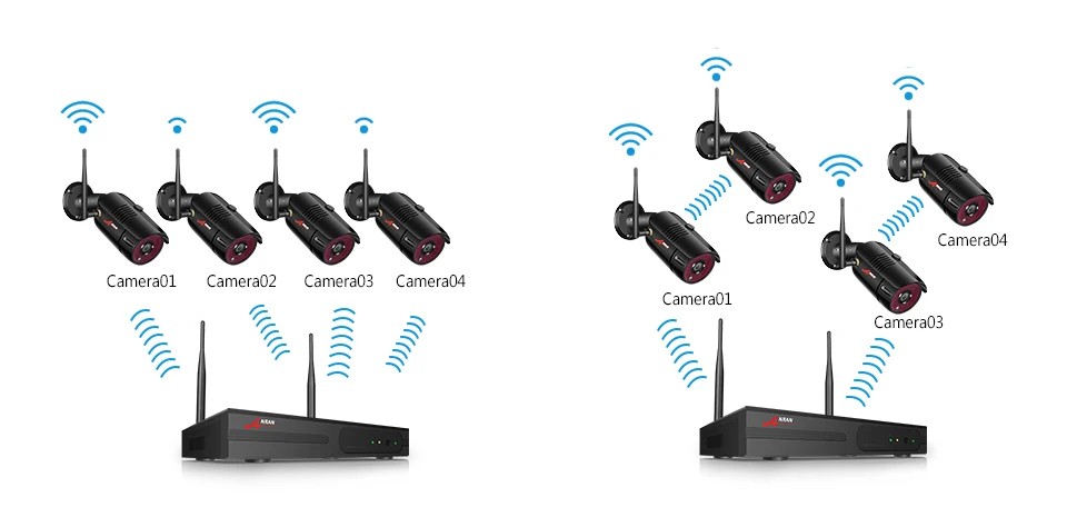 Беспроводная передачаБеспроводные соединения между камерами и сетевым видеорегистратором, свободные от сложных кабелей. Антенны расширителя диапазона гарантируют, что сигналы остаются сильными, когда вы следите за своим бизнесом или домашней беспроводной ly, до 330ft(100 метров) на открытой местности.