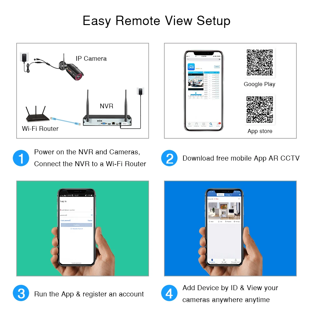Удаленный доступ в любое время в любом местеПоддержка ios, Android,Windows PC. С бесплатным приложением ARCCTV. Вы будете знать, что это происходит, даже когда вас нет рядом, получать уведомления и просматривать видео в прямом эфире или запись прямо с вашего телефона.