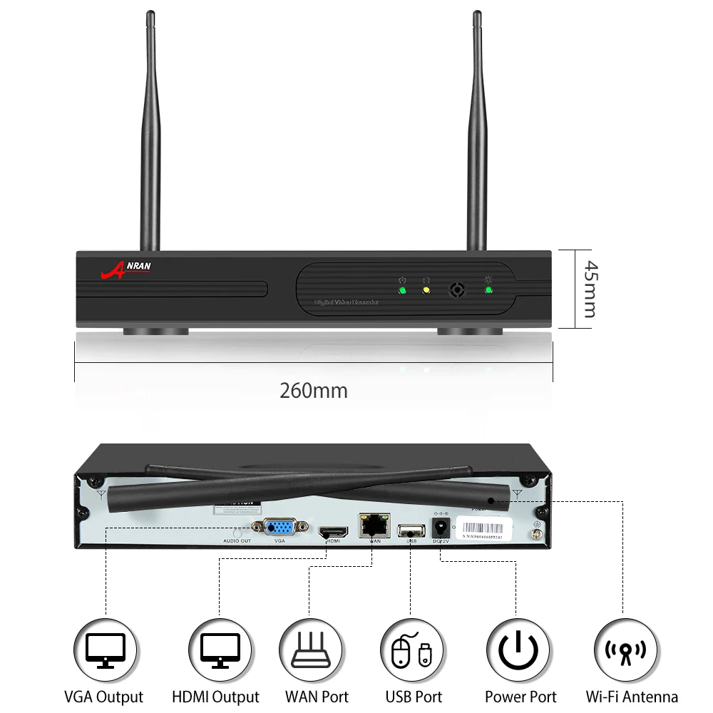 Особенности NVR:· 8-канальный беспроводной сетевой видеорегистратор 1296P· Встроенный Wi-Fi-роутер NVR, пропускная способность· Поддержка предварительного просмотра видео/записи/воспроизведения/резервного копирования через USB· Поддержка удаленного просмотра Android/IOS/Pad/PC· Сетевой протокол: UPNP, SMTP, PPPOE, DHCP и т. д.· Получайте мгновенные уведомления по электронной почте при обнаружении движения· 1 порт SATA, до 4 ТБ каждый, 1 порт USB 2,0· Источник питания: 12 в пост. Тока