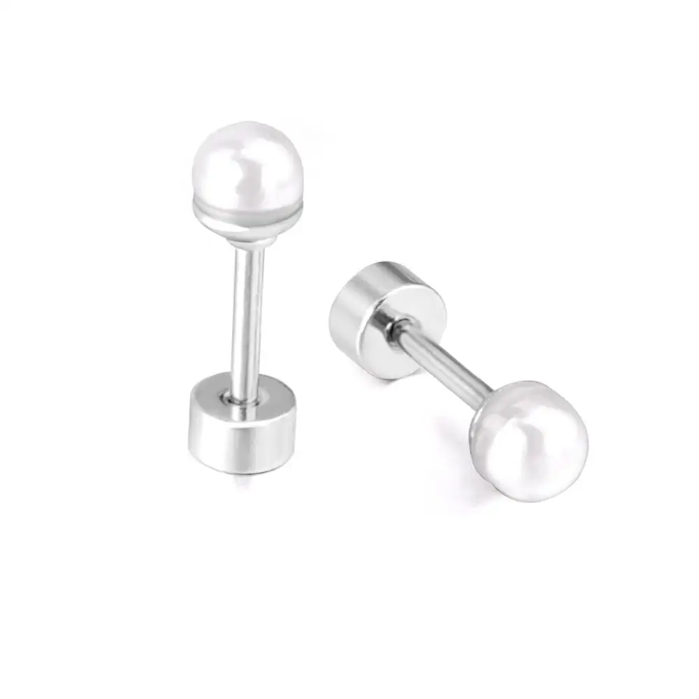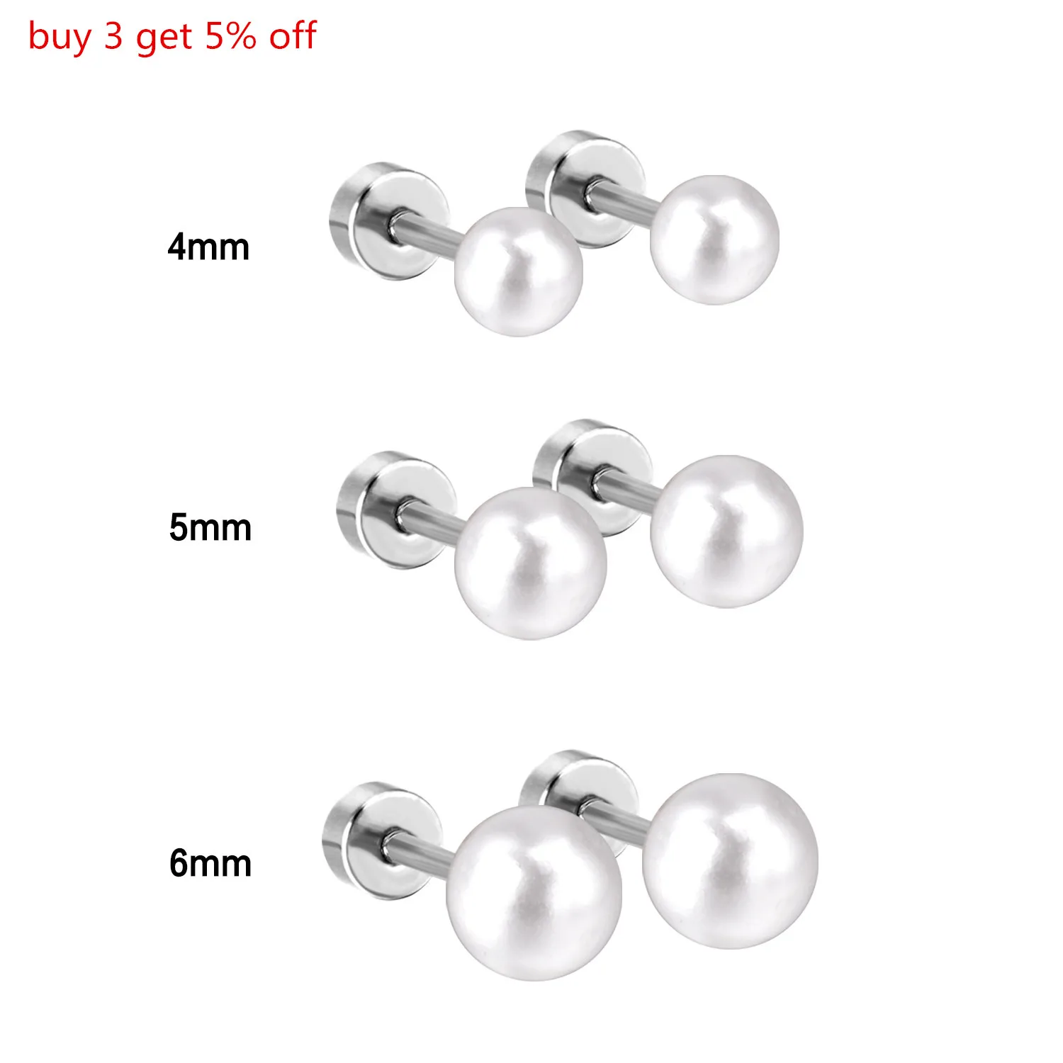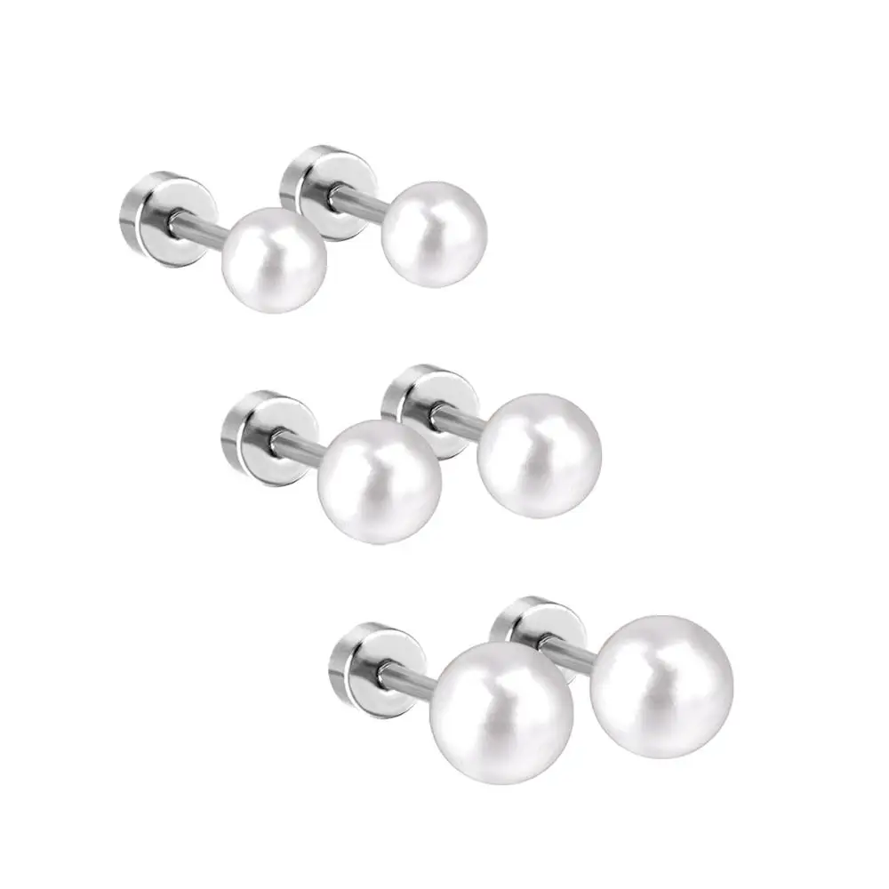 3 пары, серьги-гвоздики из нержавеющей стали с искусственным жемчугом