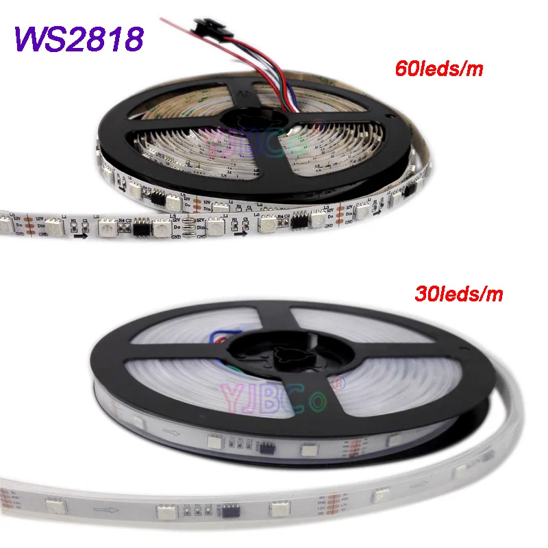 5 м DC12V (обновление WS2811)WS2818 пикселей RGB светодиодный светильник полоса адресуемого двойного сигнала WS2818 IC 30 светодиодовм 60 светодиодовм лампа лента