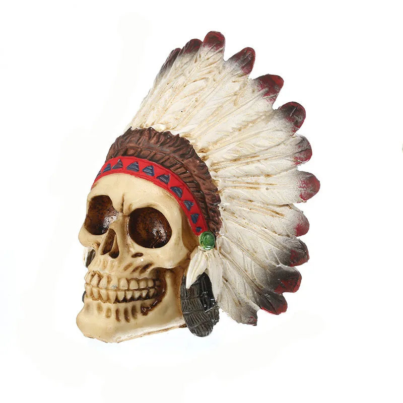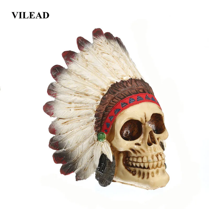 VILEAD 14 см Индийский череп Украшения Ремесел Смолы Украшение дома Художественная роспись Кинематографический реквизит Кафе-бар Скульптура Личность Украшение рабочего стола Ужас Атмосфера Украшение Статуя сада