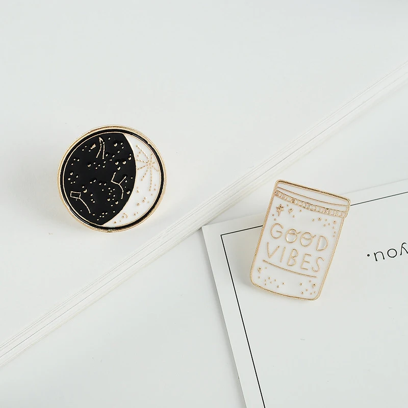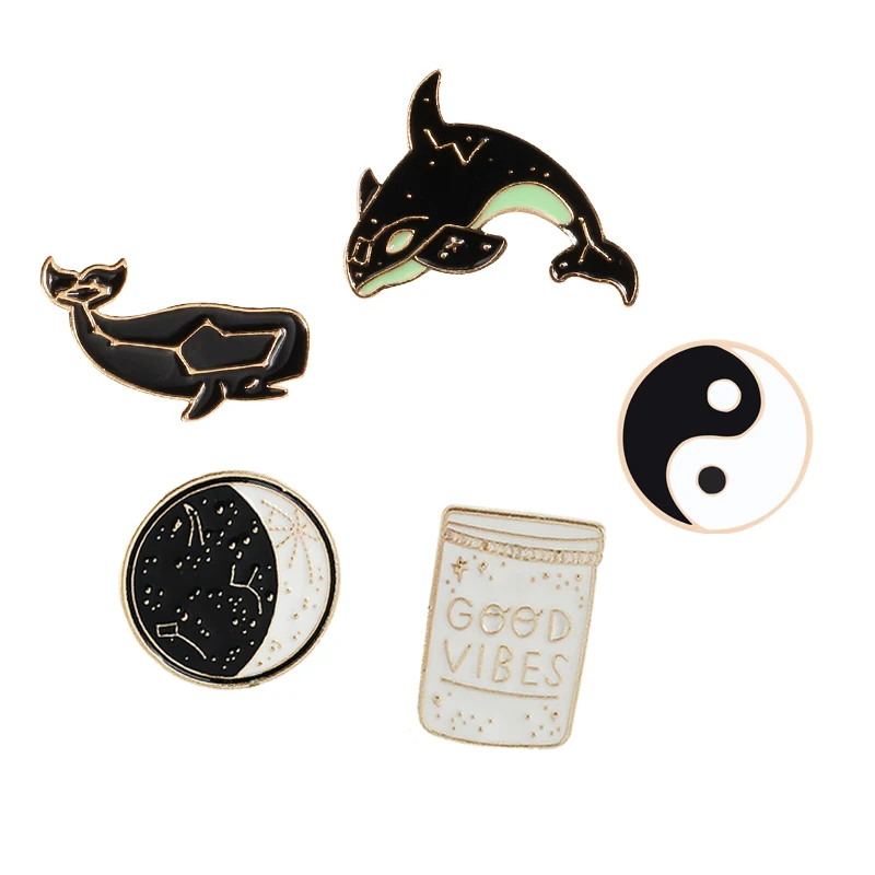 Белые Черные эмалевые заколки Созвездие Луна хорошая вибрия бутылка Кит Рыба брошка мультфильм пальто куртки значок на лацкан Ювелирное Украшение подарок