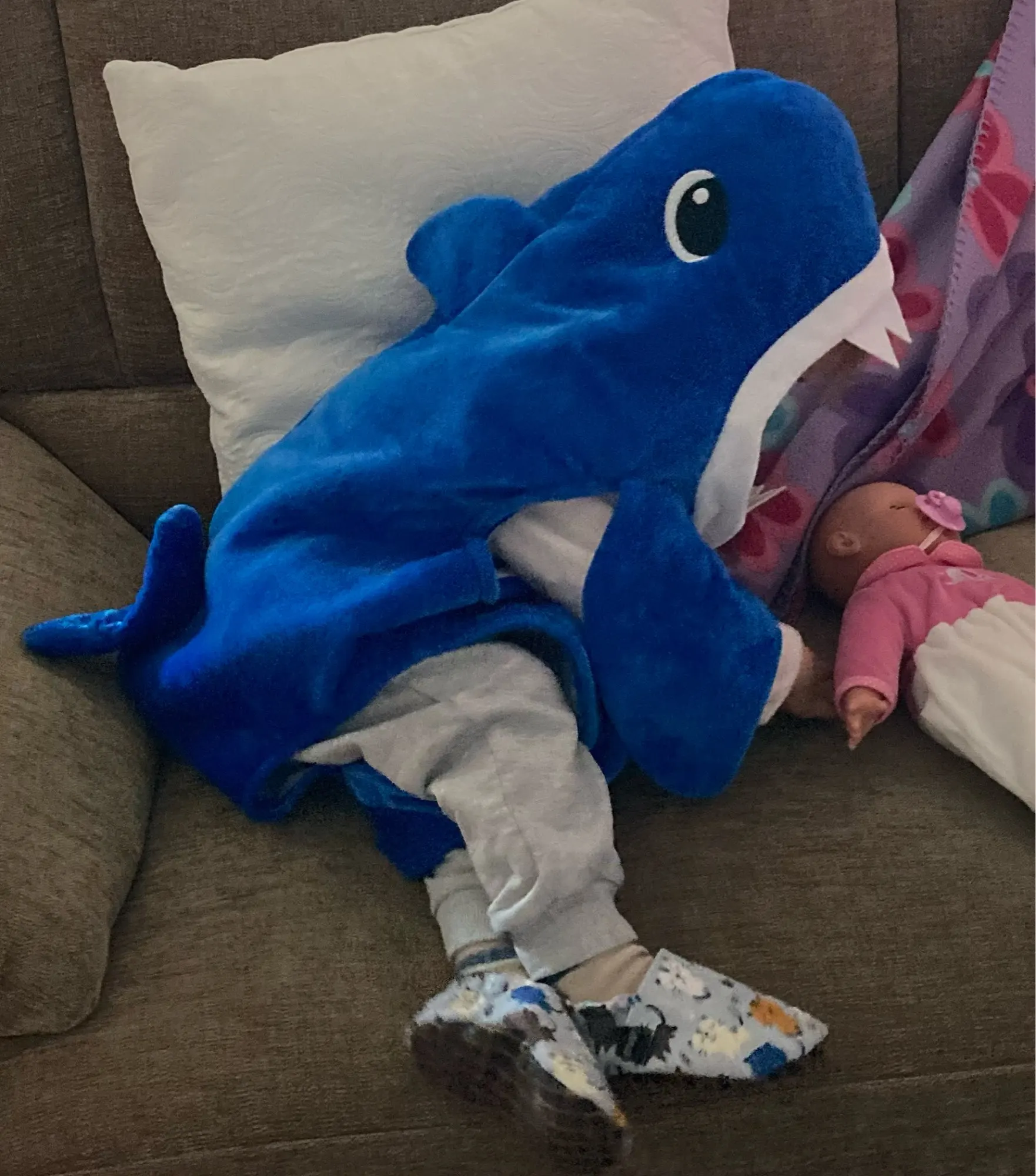 Милый. Моему Малышу очень нравится детская Акула, и ей очень нравится этот костюм. На данный момент немного великовата (она 86 см), но останется на 1-2 года по крайней мере.