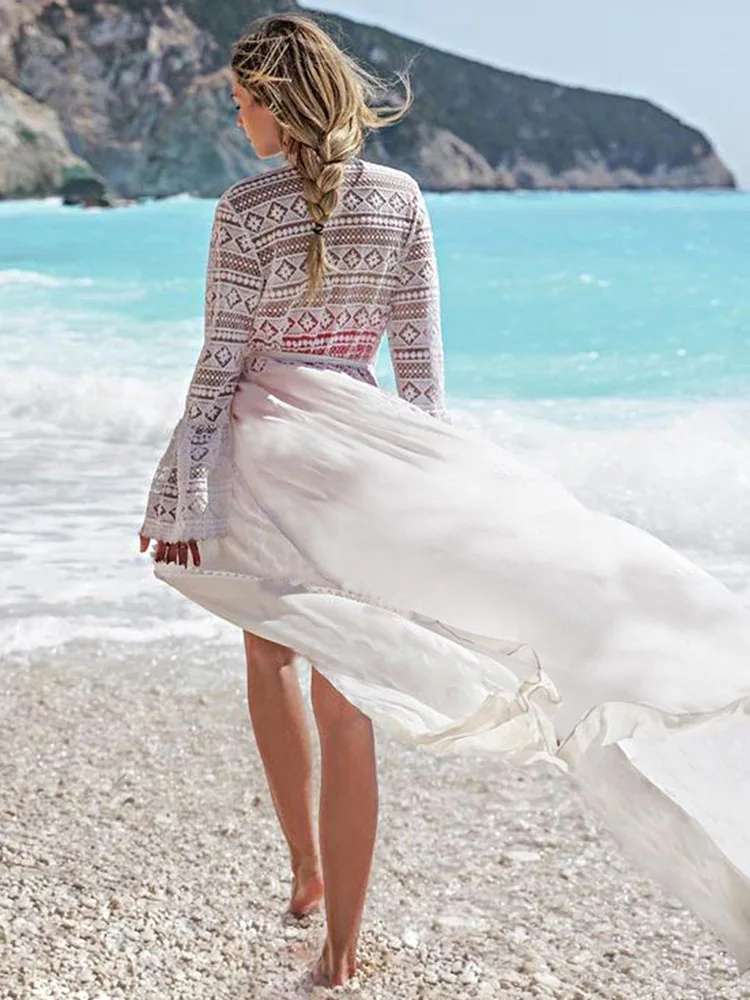 туника пляжная Костюмы с юбкой туника женская женское платье Женское кружевное лоскутное привлекательное прозрачное пляжное платье,