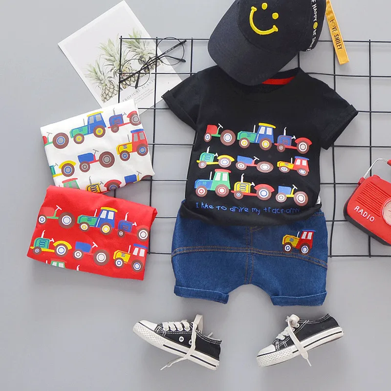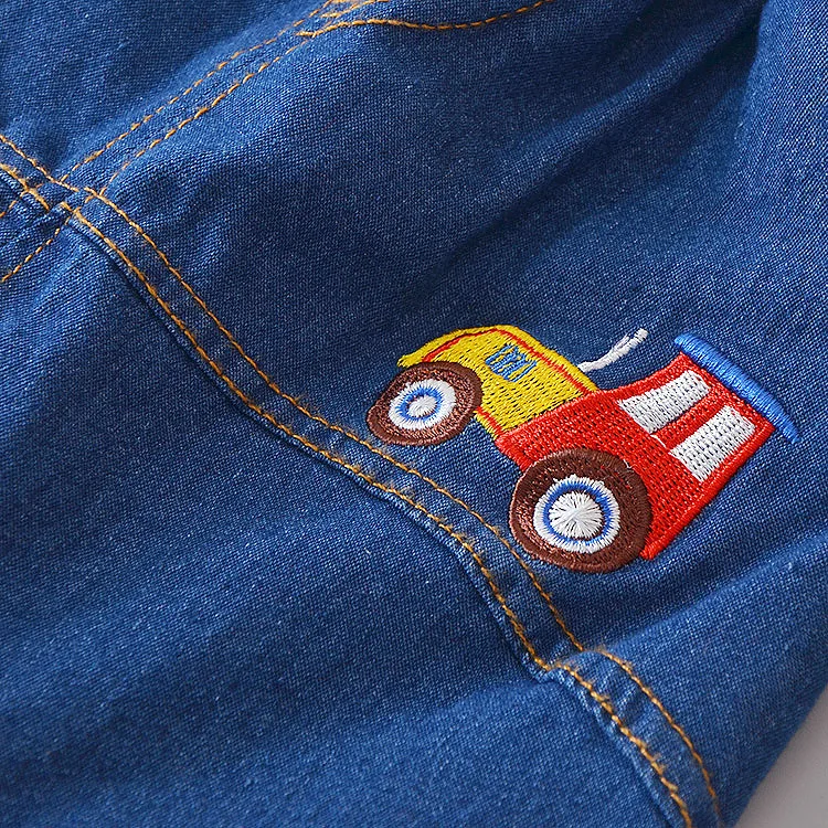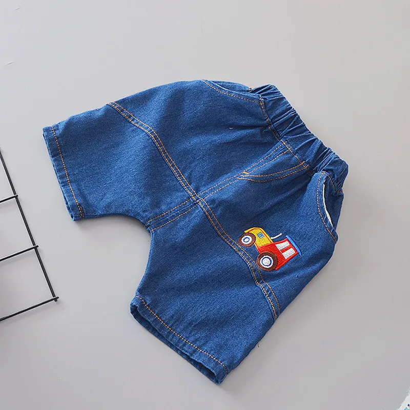 Футболка с коротким рукавом и принтом автомобиля, из мягкой джинсовой ткани