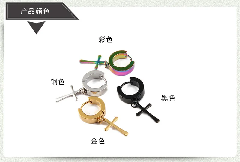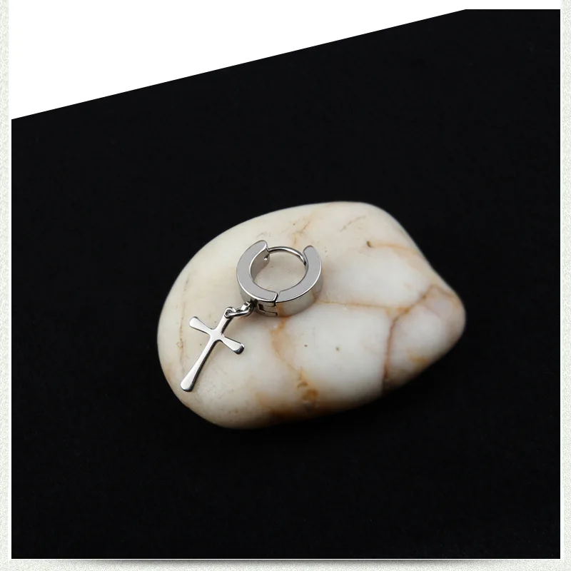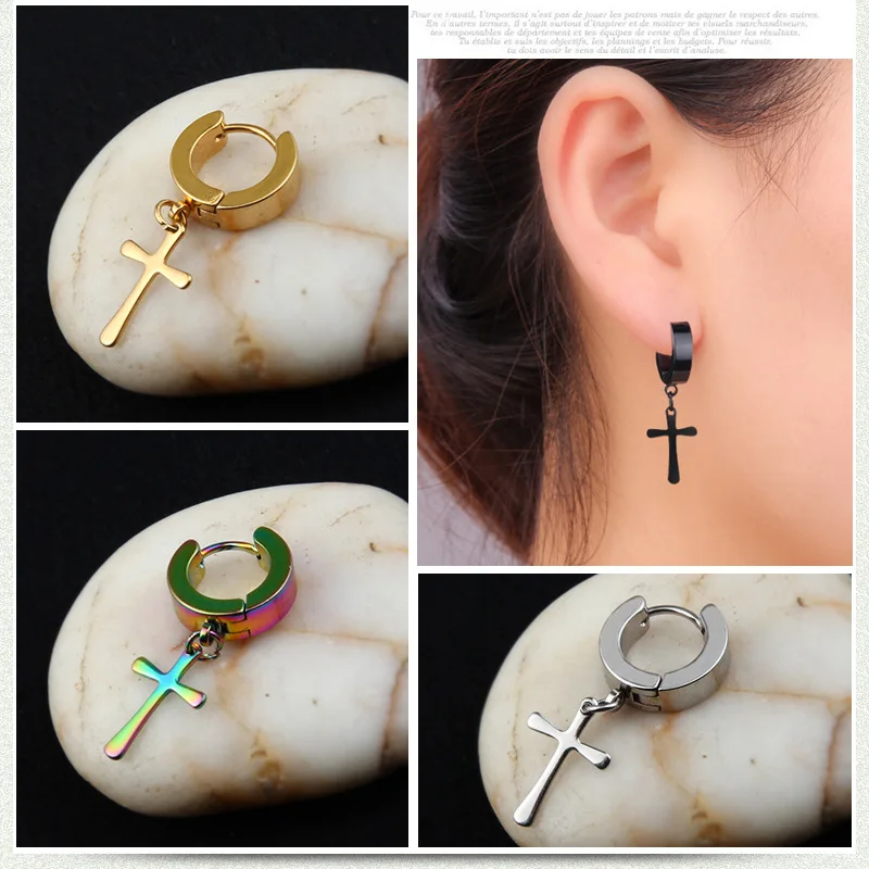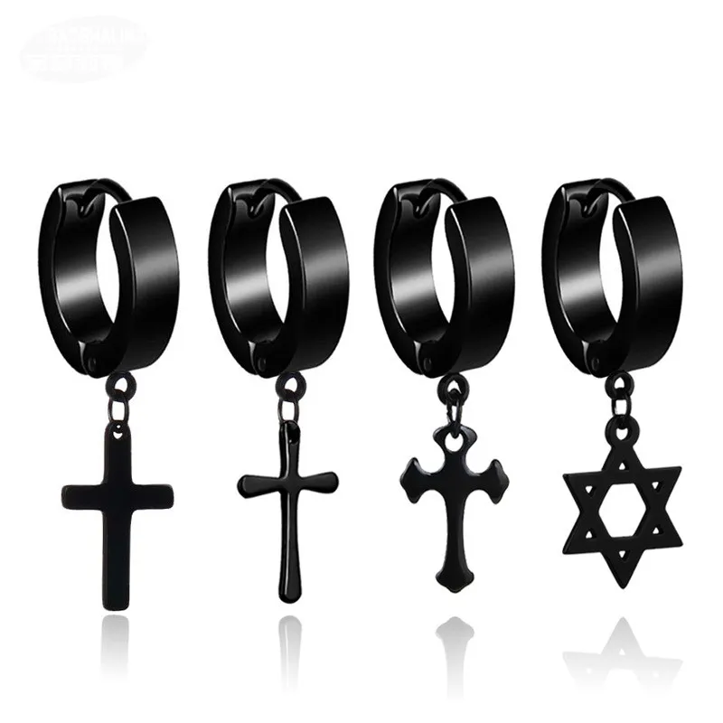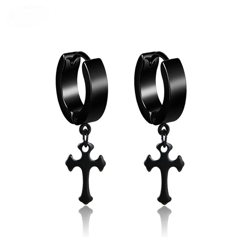 Серьги-гвоздики мужские из нержавеющей стали, ювелирные украшения в готическом стиле панк-рок, крест черногосеребряного цвета