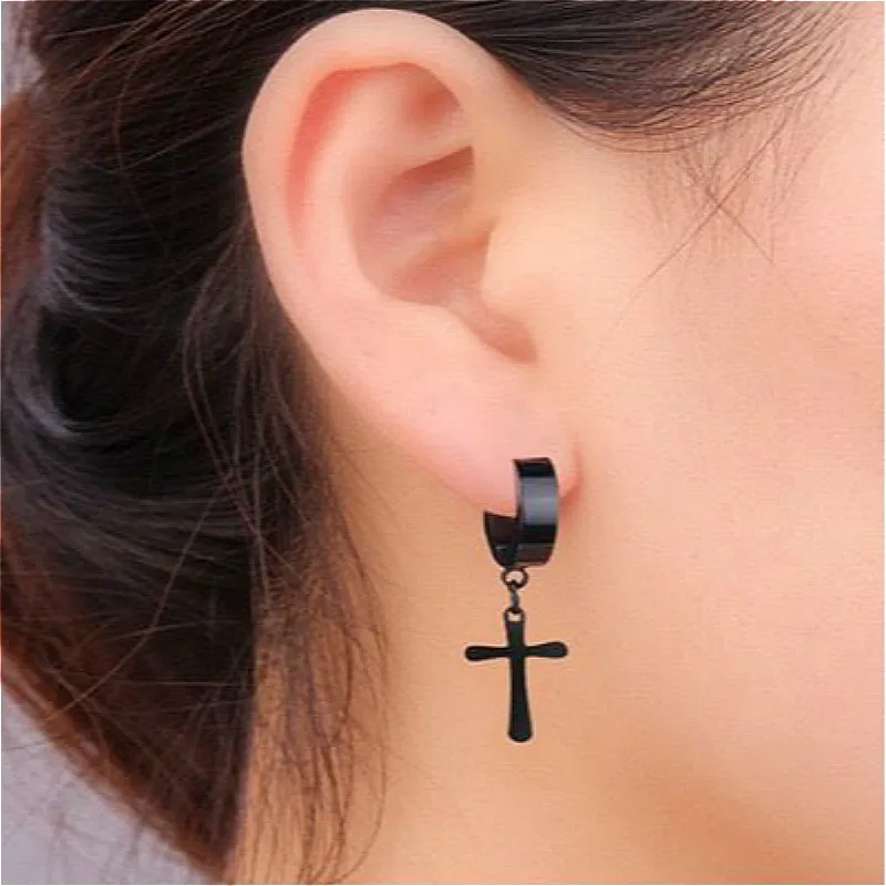 Серьги-кольца женские, мужские, из нержавеющей стали, с черным крестом