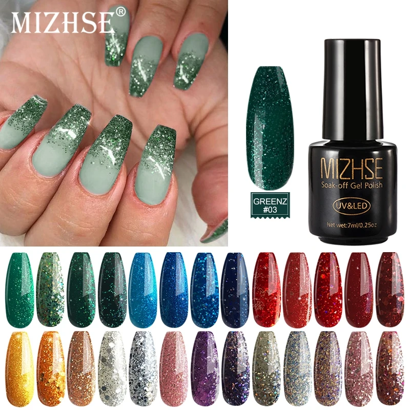 MIZHSE 102 горячая Распродажа Цвет Блеск УФ-гель для ногтей отверждения Светодиодная лампа Гель-лак полуперманентный Блестящий лак