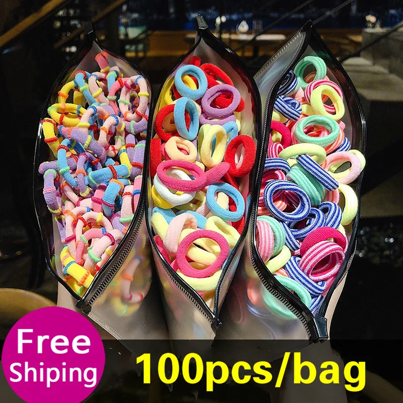 100 шт./лот, цветные эластичные резинки для волос, Детские держатели для волос, милые резинки для волос, аксессуары для волос для девочек